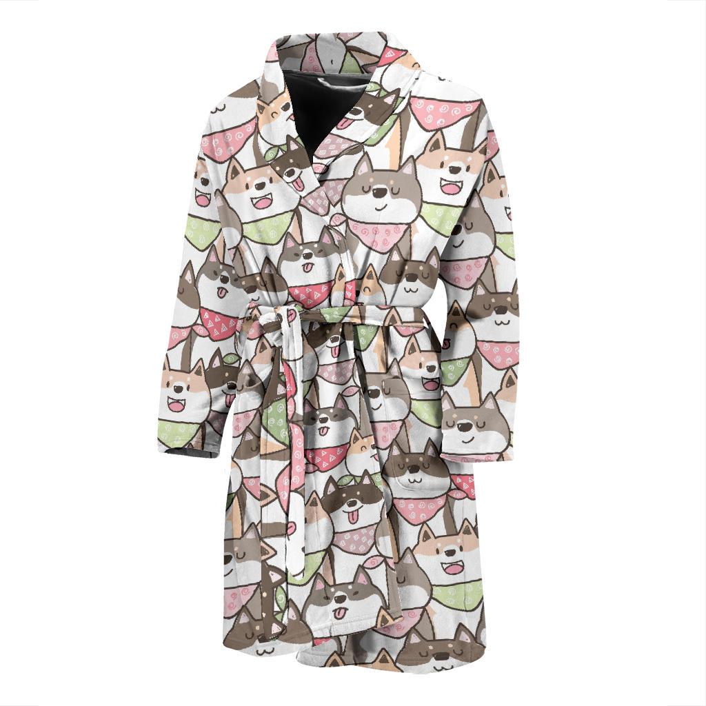 Shiba Inu Dog Pupppy Print Pattern Men Long Robe