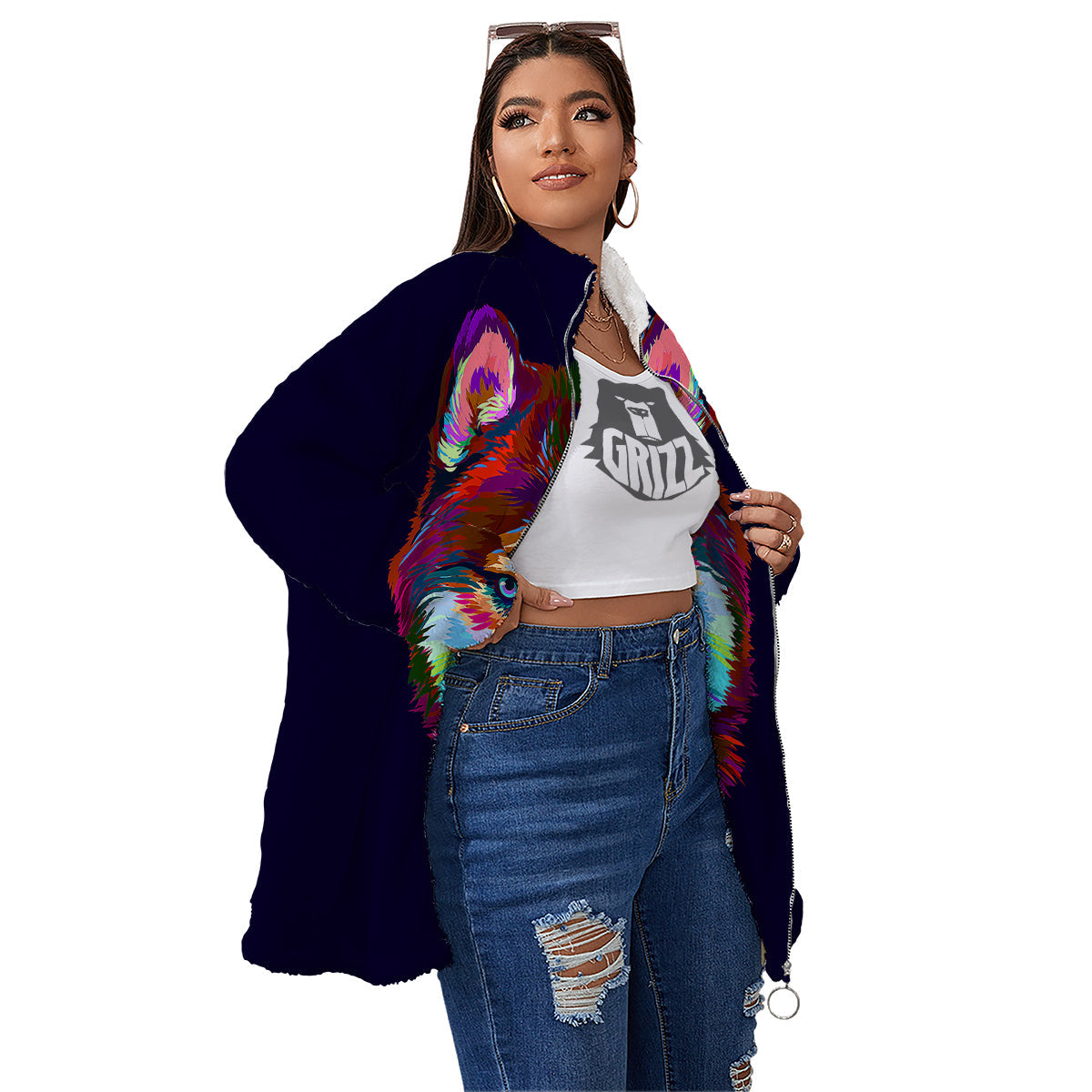 Siberian Husky Colorful Print Women's Sherpa Jacket