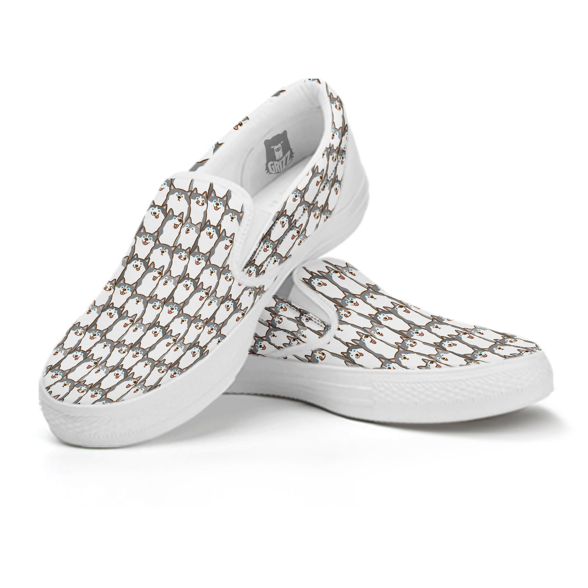 Siberian Husky Cute Print Pattern White Slip On Shoes