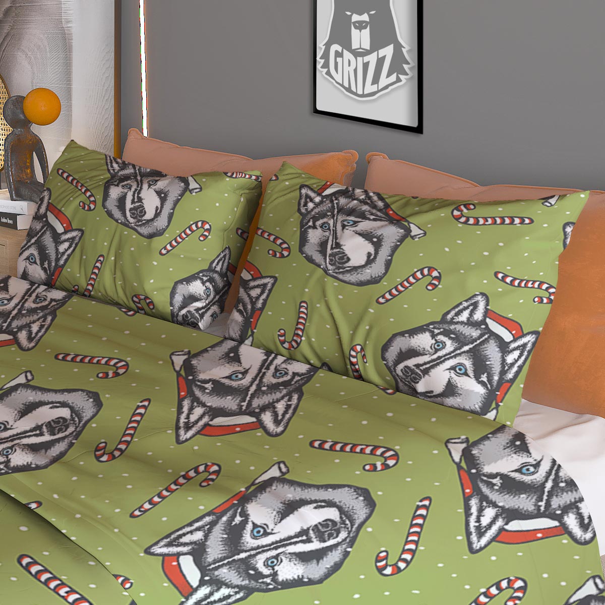 Siberian Husky Santa Print Pattern Duvet Cover Bedding Set