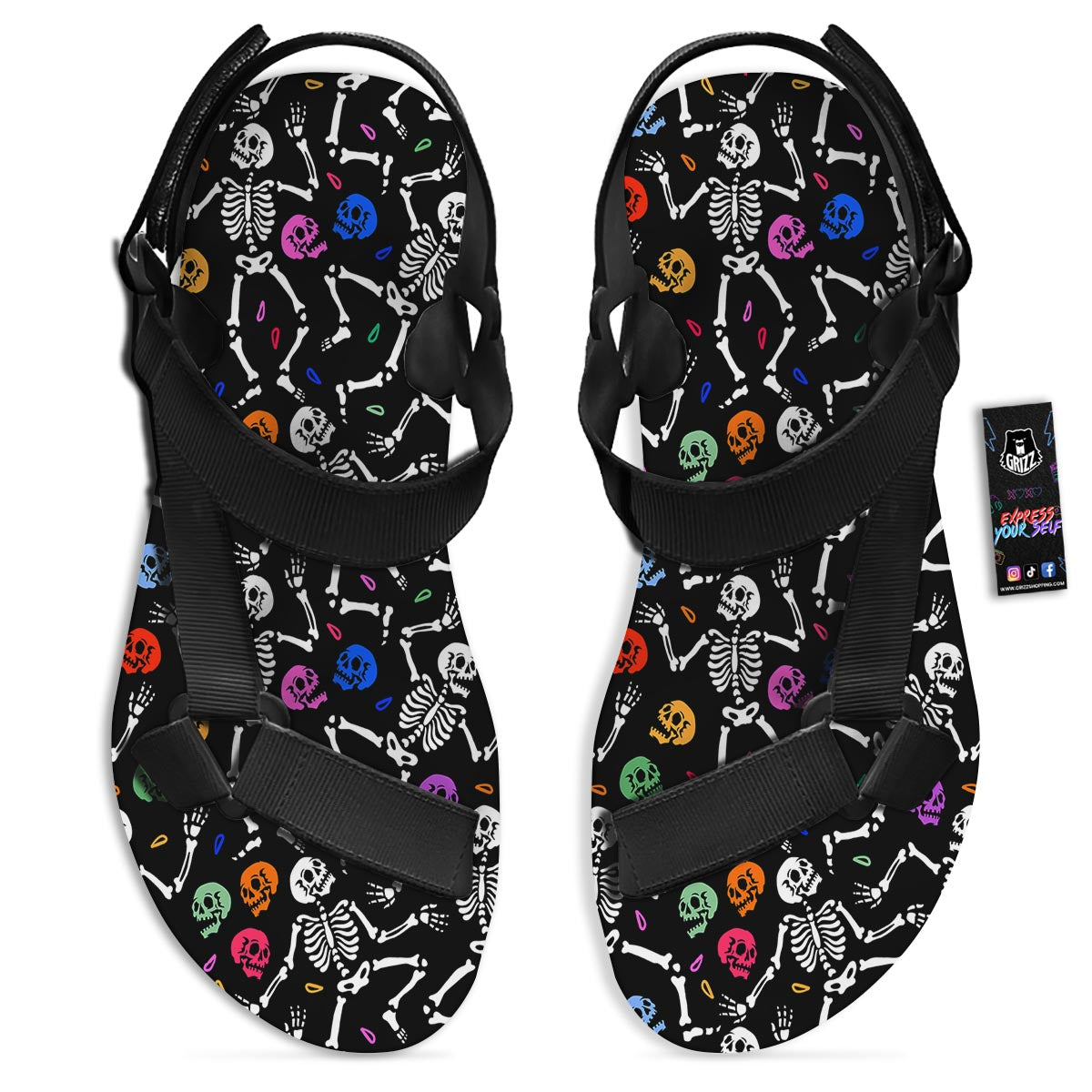 Looking for unique toe sandals? Check out our Skeleton Dancing Trippy Print Pattern Black Open Toe Sandals at Grizzshopping. Our toe sandals are handcrafted to the highest quality standards that custom made for you