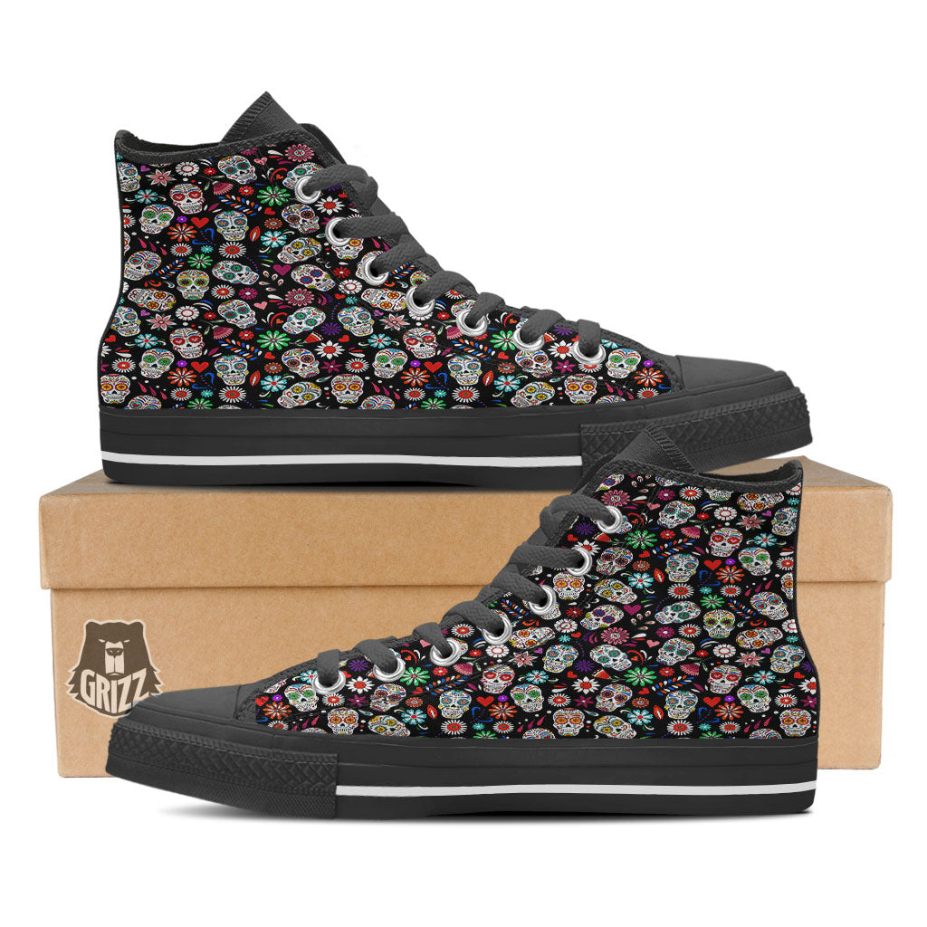 Skeleton Day Of The Dead Print Pattern Black High Top Shoes