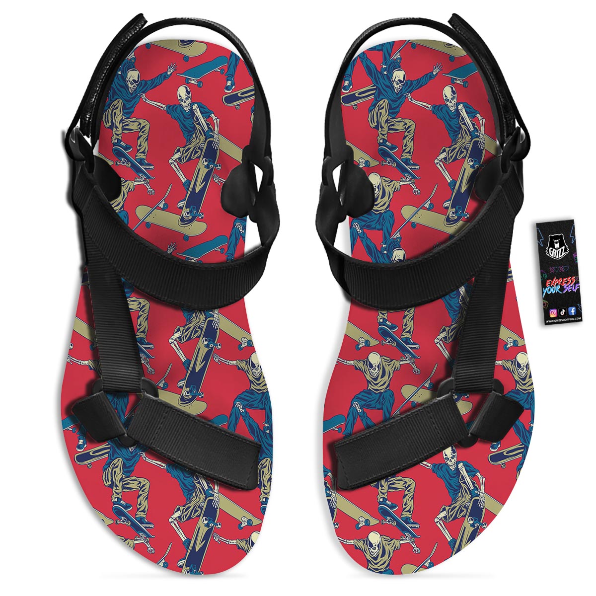 Looking for unique toe sandals? Check out our Skeleton Skateboarding Print Pattern Black Open Toe Sandals at Grizzshopping. Our toe sandals are handcrafted to the highest quality standards that custom made for you