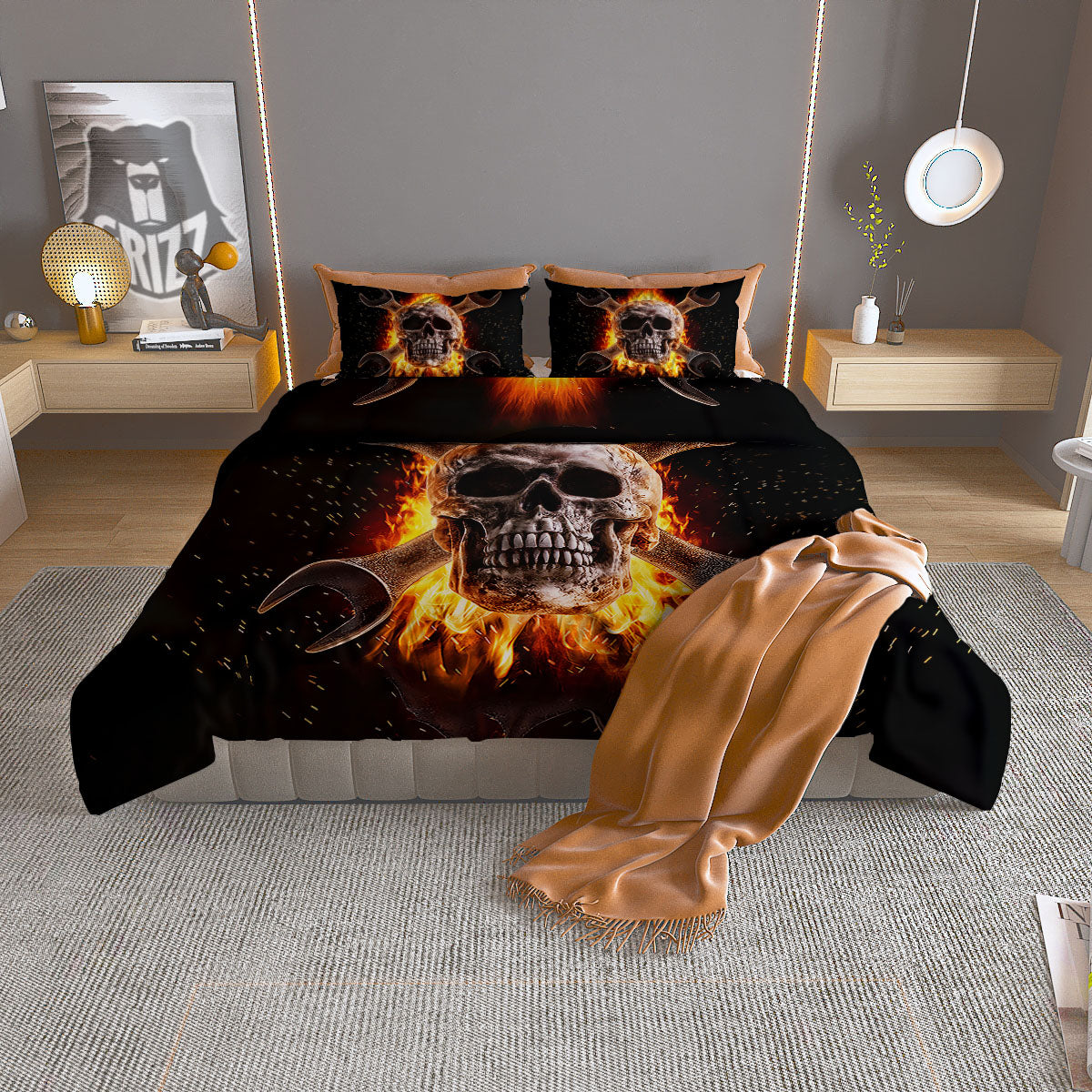 Looking for a unique duvet cover? Check out our Skull Flaming And Cross Wrench Print Duvet Cover Bedding Set at Grizzshopping. Our duvet cover are handcrafted to the highest quality standards that custom made for you