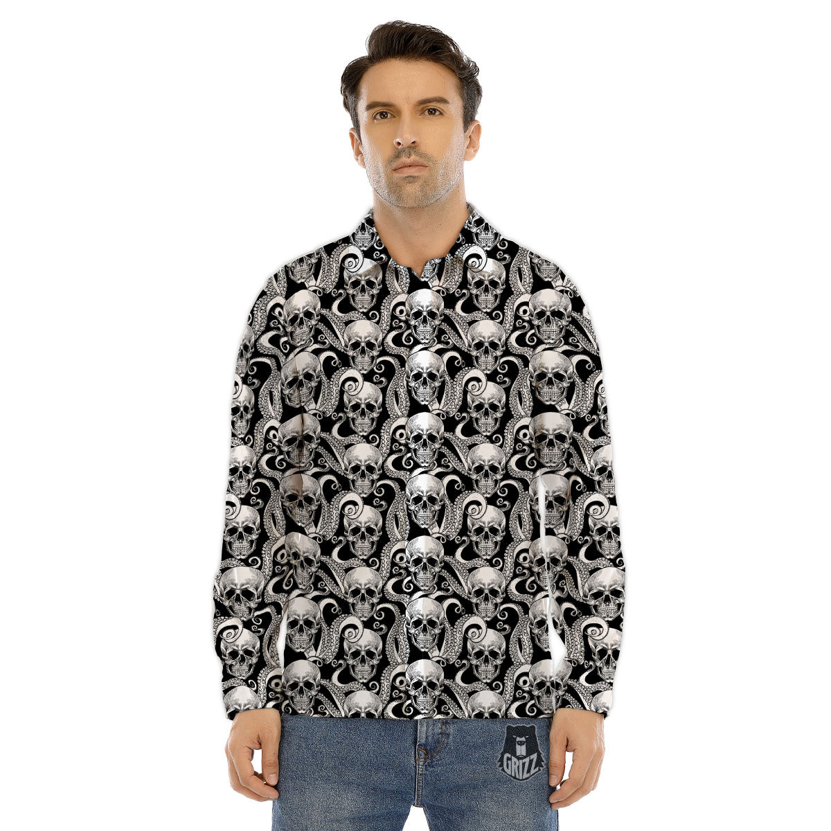 Skull Octopus Tentacles Print Pattern Men's Dress Shirts