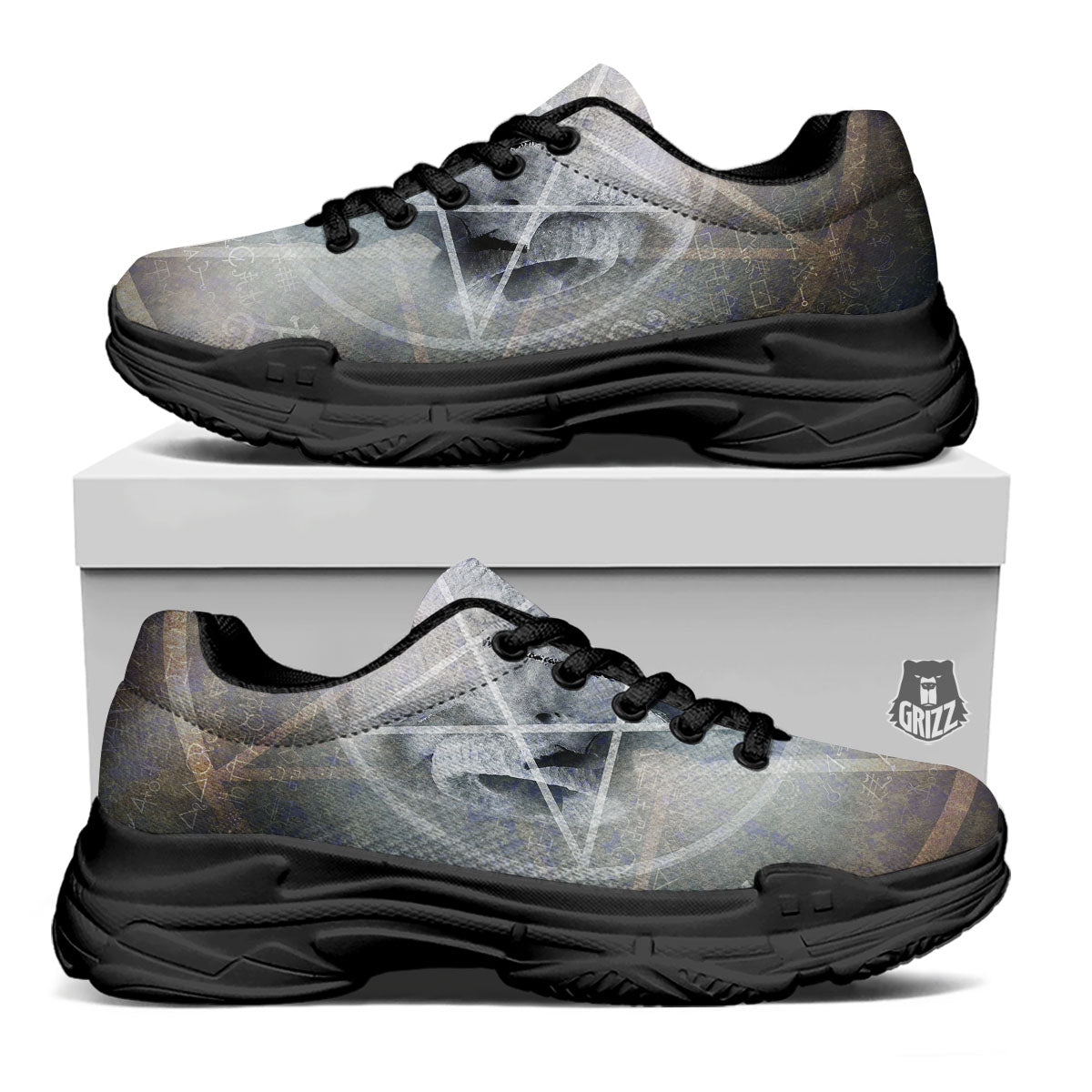 Looking for unique chunky shoes? Check out our Skull Satanic Pentagram Print Black Chunky Shoes at Grizzshopping. Our chunky shoes are handcrafted to the highest quality standards that custom made for you