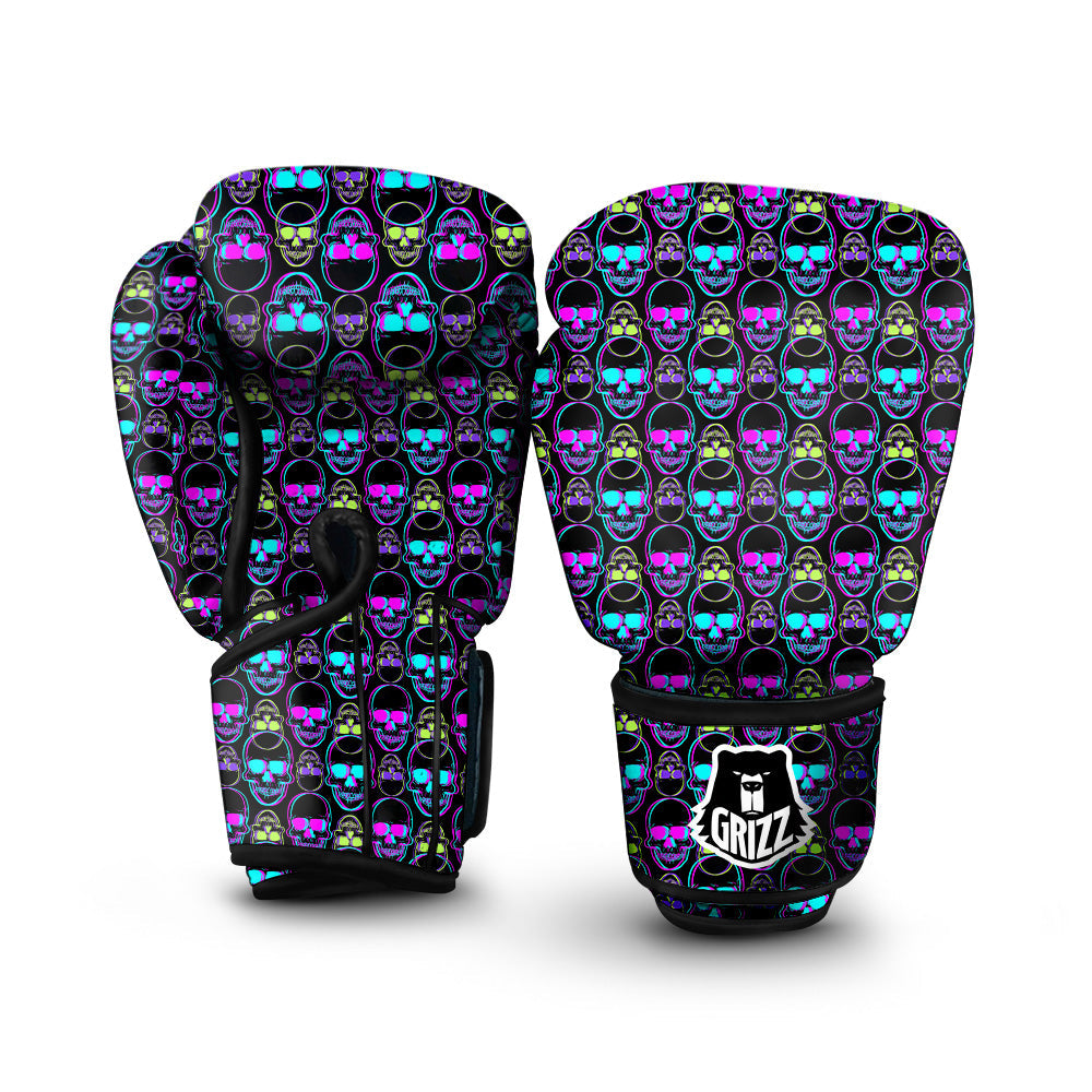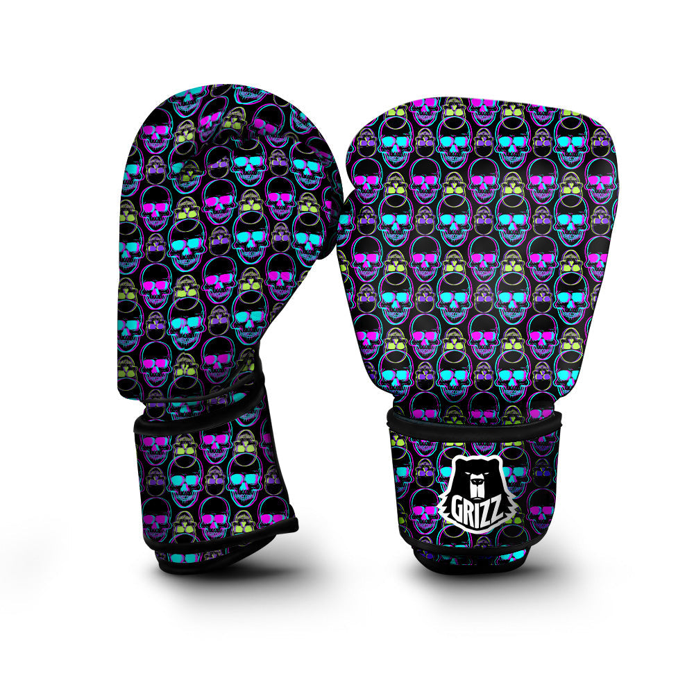 Skull Trippy Neon Print Pattern Boxing Gloves