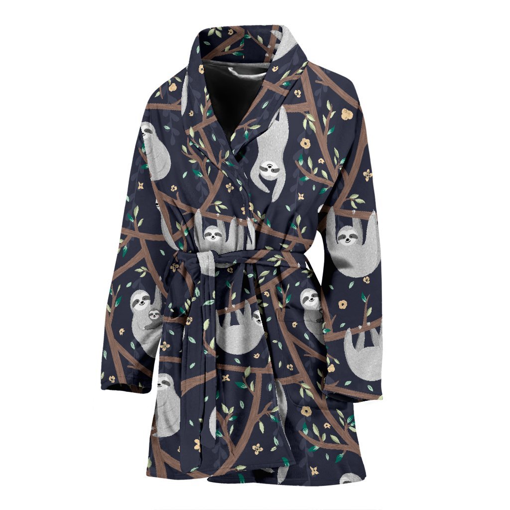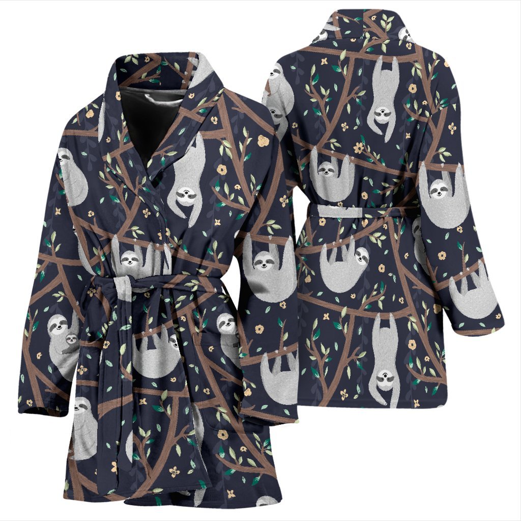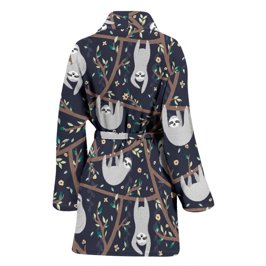 Sloth Floral Pattern Print Women Long Robe