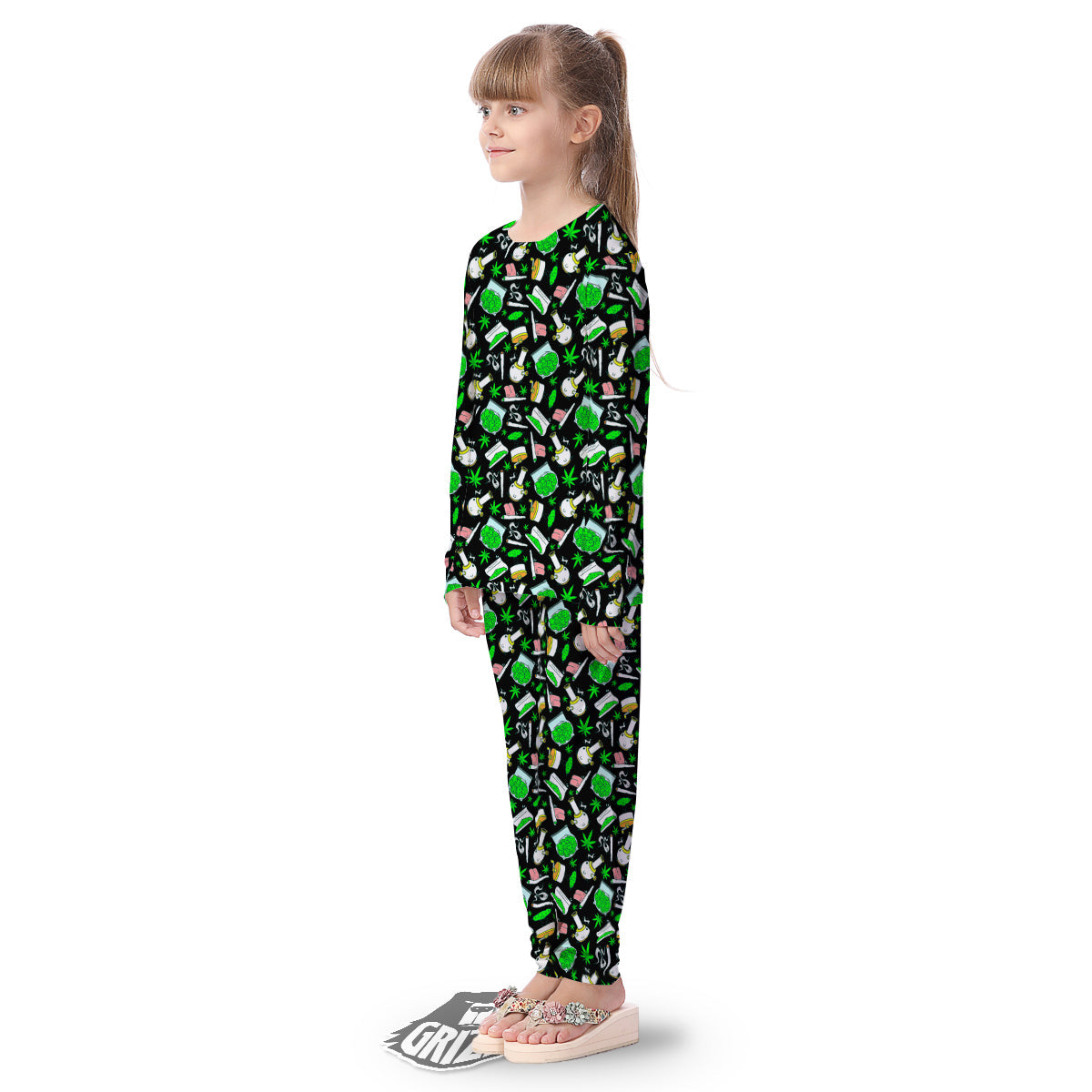 Smoke Weed Green Neon Print Pattern Kid's Pajamas