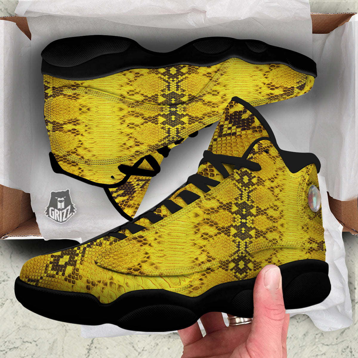 Looking for a unique basketball shoes? Check out our Snake Skin Yellow Print Black Basketball Shoes at Grizzshopping. Our basketball shoes are handcrafted to the highest quality standards that custom made for you