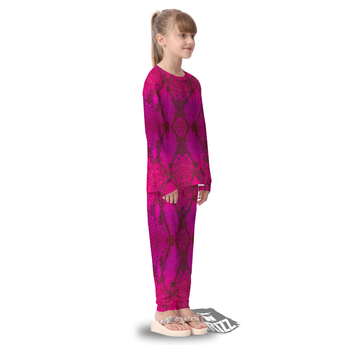 Snakeskin Black And Pink Magenta Print Kid's Pajamas