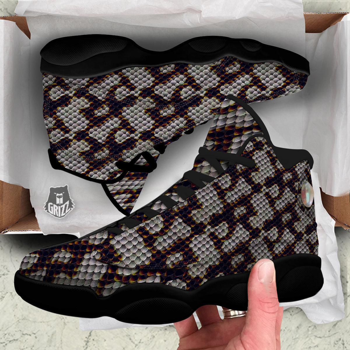 Snakeskin Black And White Texture Print Black Basketball Shoes