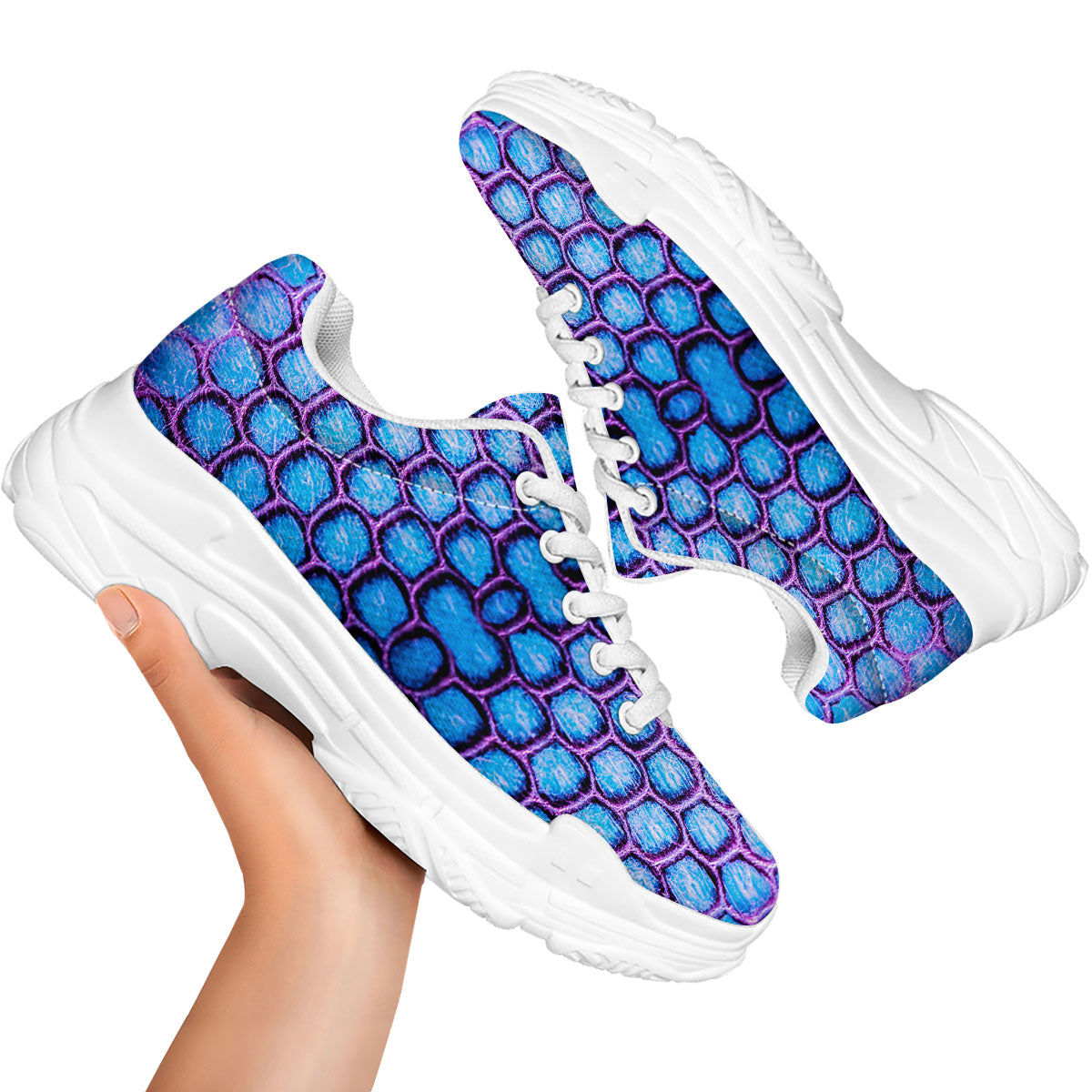 Snakeskin Blue And Purple Print Pattern White Chunky Shoes
