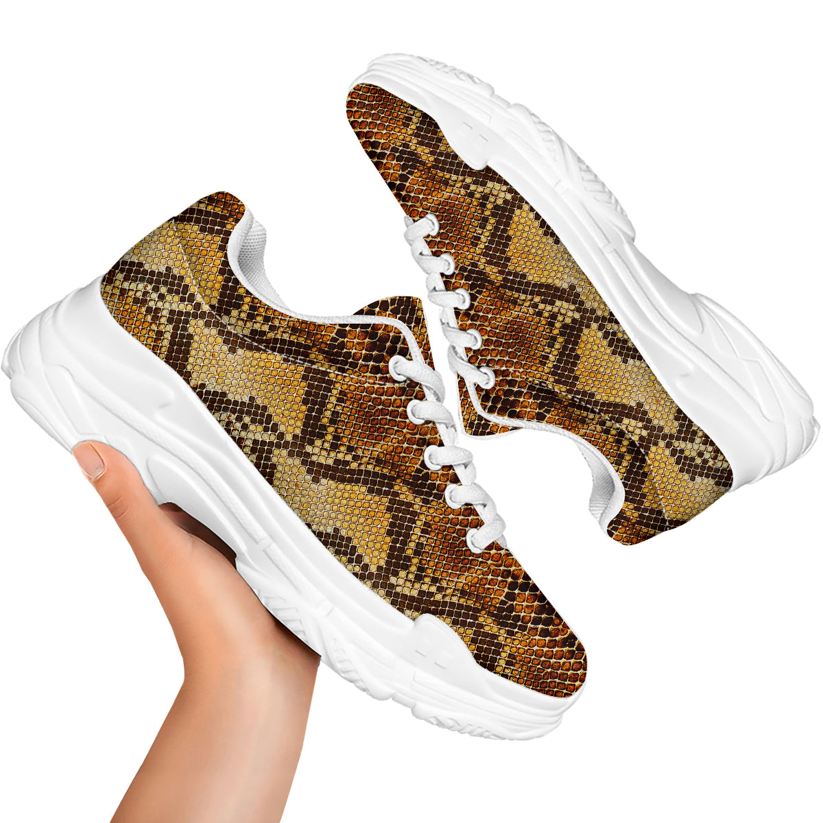 Looking for unique chunky shoes? Check out our Snakeskin Leathers Print White Chunky Shoes at Grizzshopping. Our chunky shoes are handcrafted to the highest quality standards that custom made for you