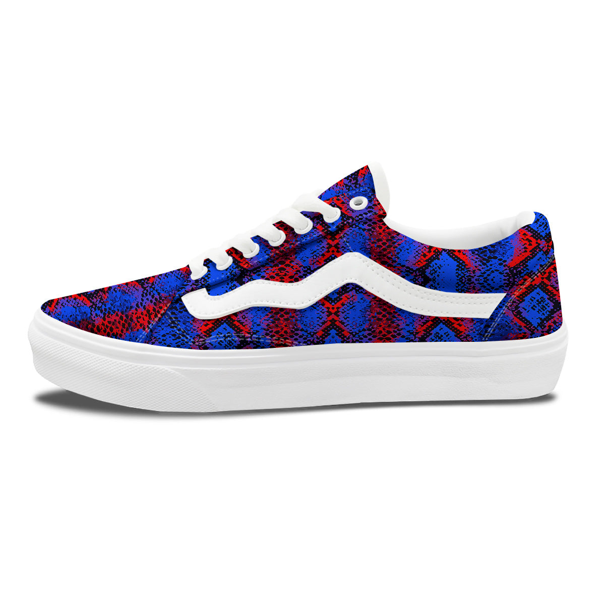 Looking for unique Skate Shoes shoes? Check out our Snakeskin Red And Blue Print Skate Shoes at Grizzshopping. Our Skaste Shoes are handcrafted to the highest quality standards that custom made for you