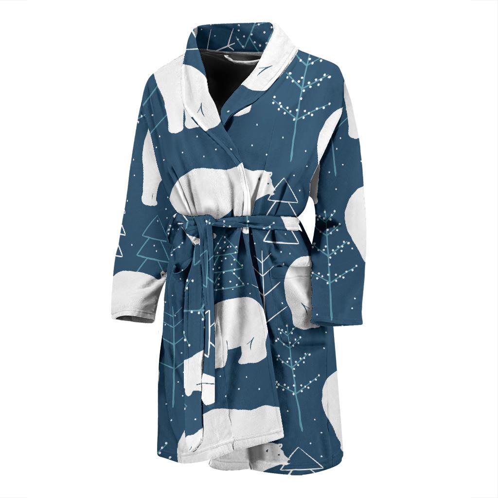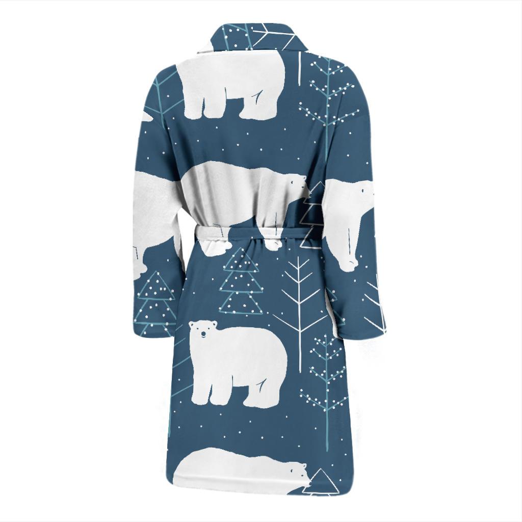 Snow Polar Bear Christmas Tree Pattern Print Men Long Robe
