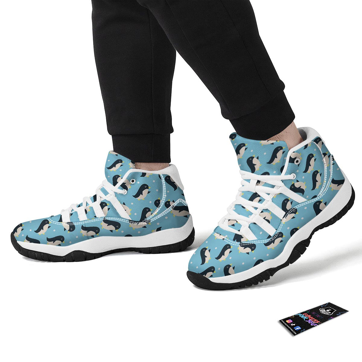 Snow Polka Dot Penguin Pattern Print White Bball Shoes