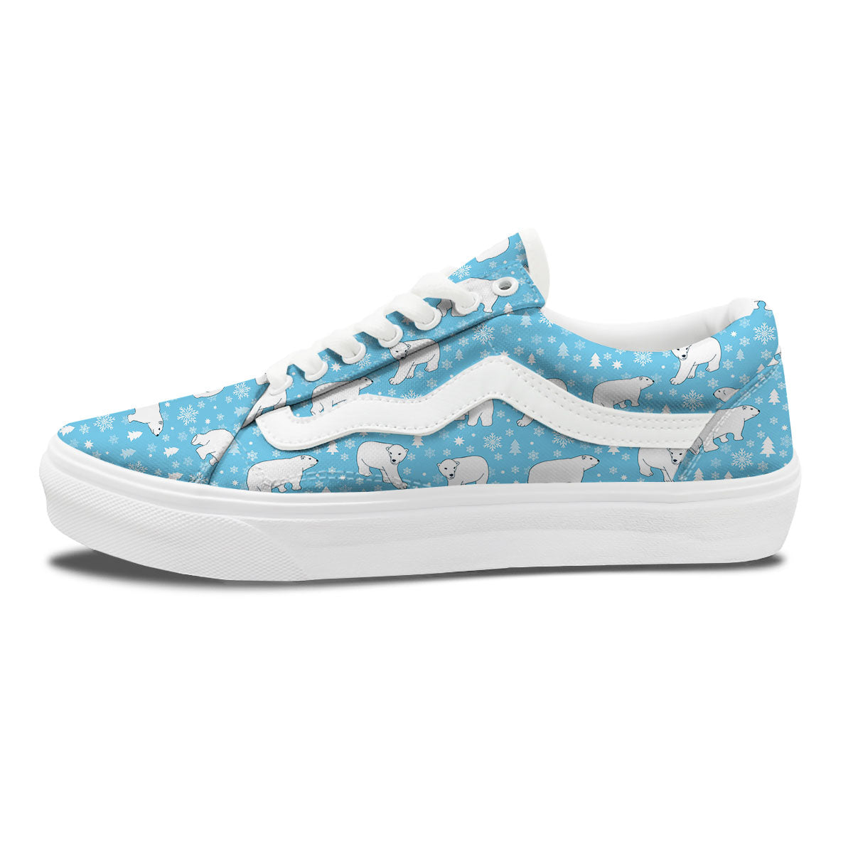 Snowflake And Polar Bear Print Pattern Skate Shoes