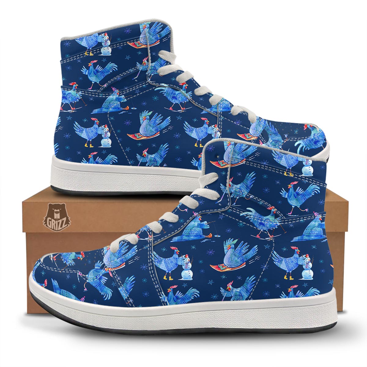 Snowflake And Rooster Print Pattern High Top Sneakers