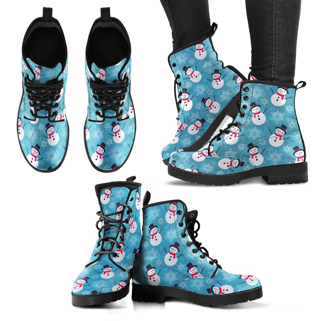 Snowflake Snowman Pattern Print Men Women Leather Boots