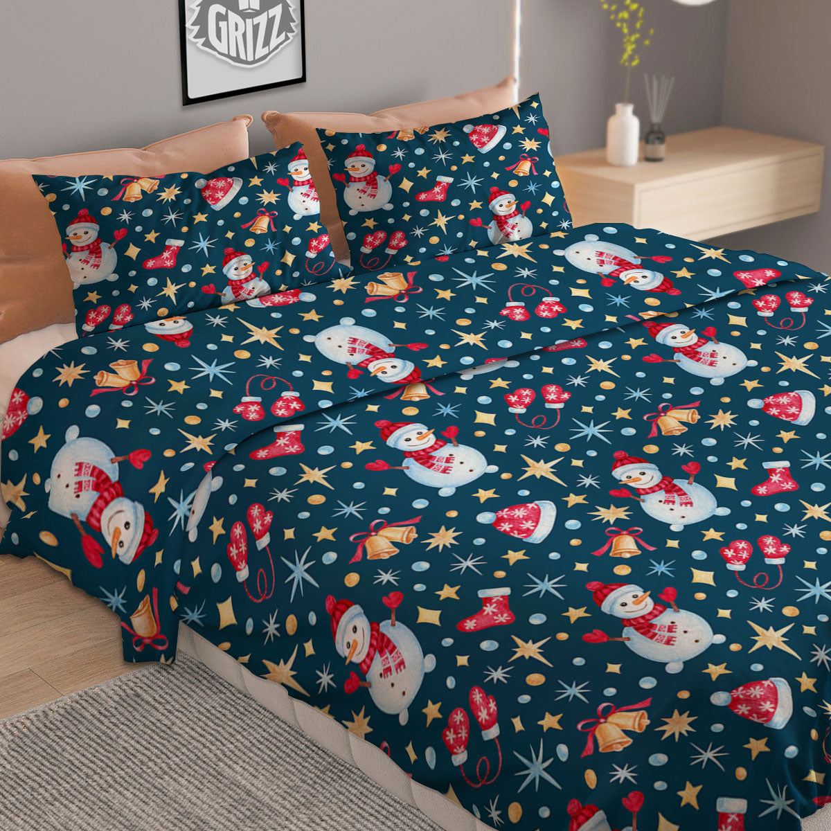Snowman Christmas Print Pattern Duvet Cover Bedding Set
