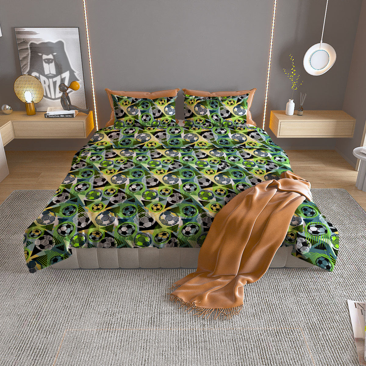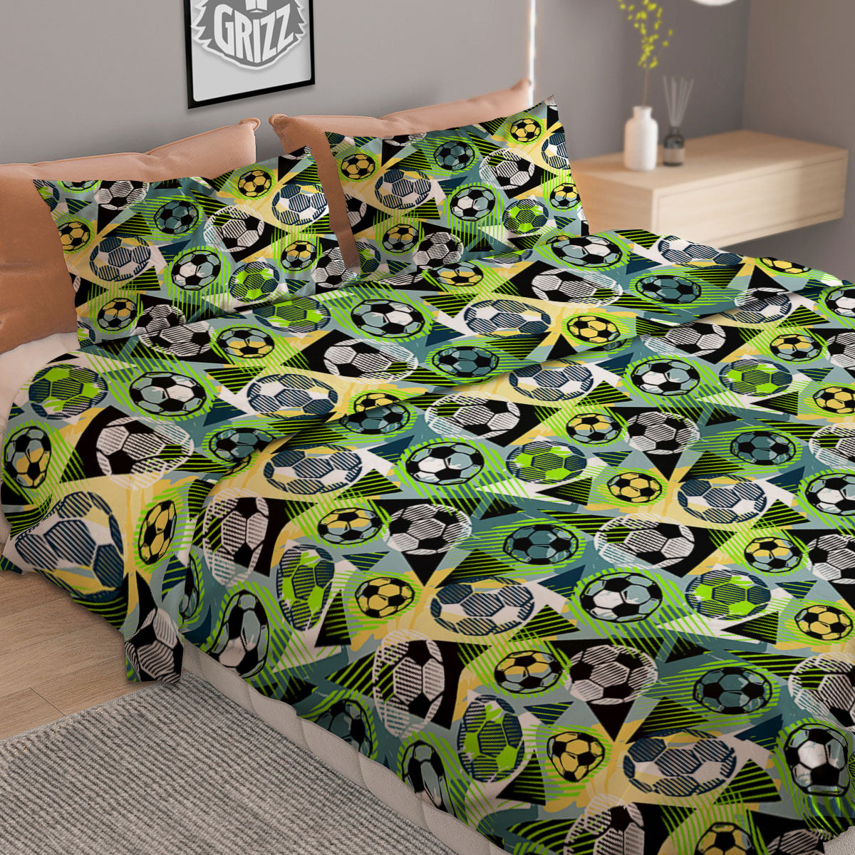 Soccer Ball Grunge Print Pattern Duvet Cover Bedding Set