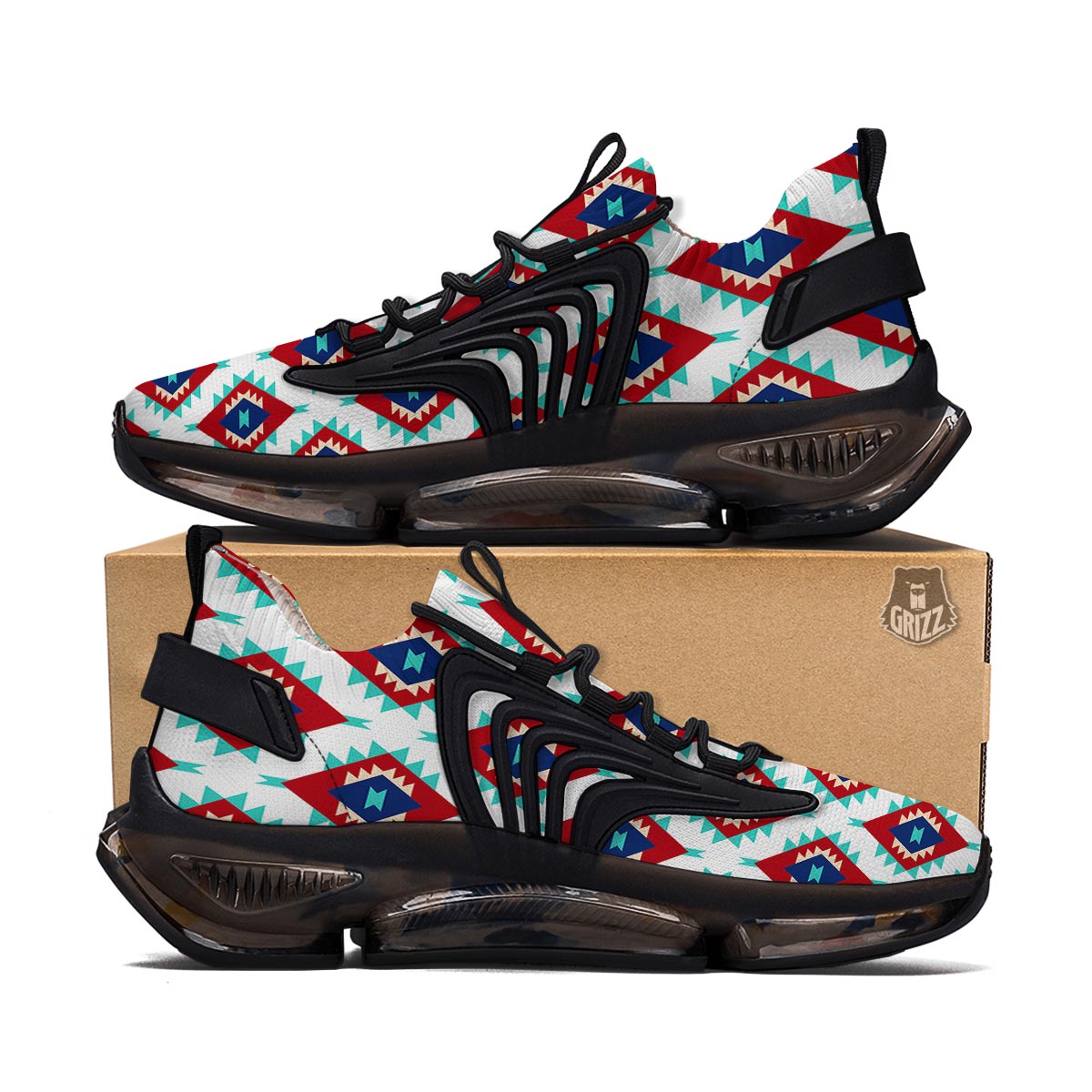 Southwestern Teal And Red Print Pattern Black Gym Shoes
