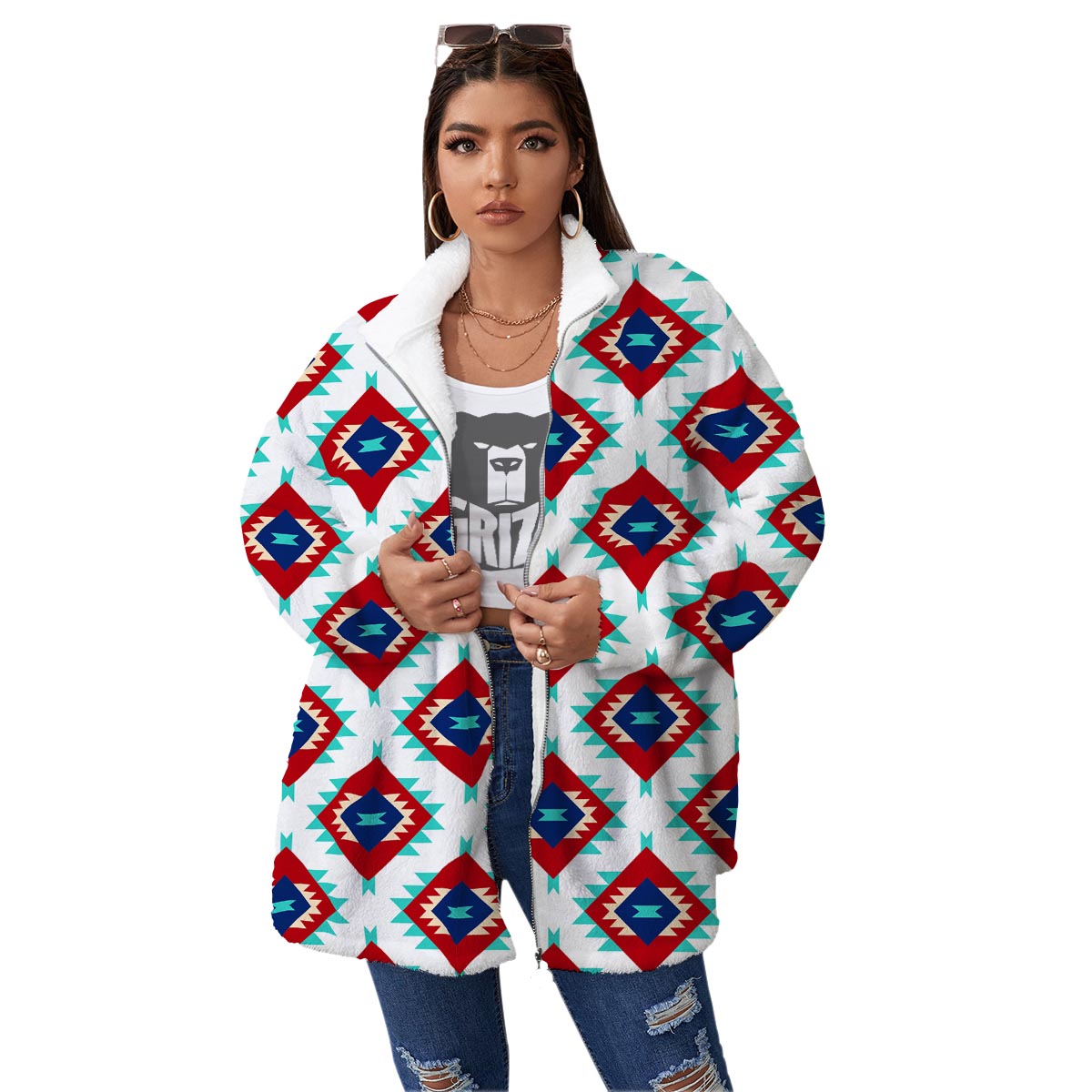 Southwestern Teal And Red Print Pattern Women's Sherpa Jacket
