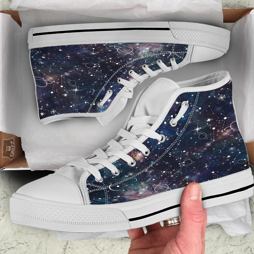 Space Constellation Galaxy Print White High Top Shoes