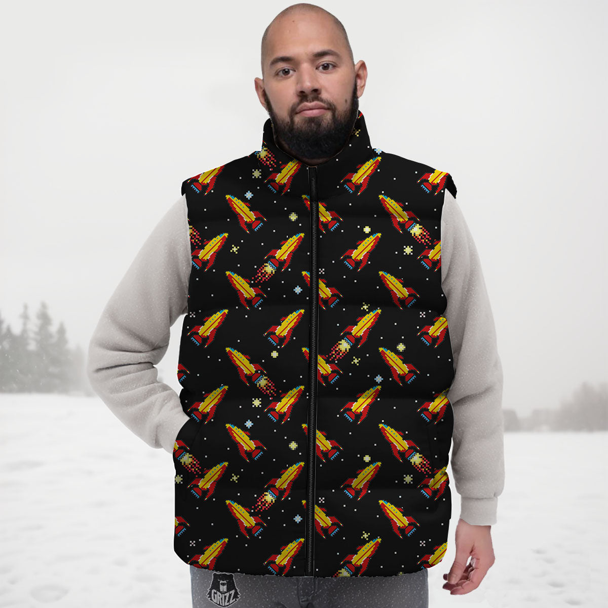 Looking for a unique Down Vest? Check out our Spaceships Pixel Print Pattern Down Vest at Grizzshopping. Our down vest are handcrafted to the highest quality standards that custom made for you