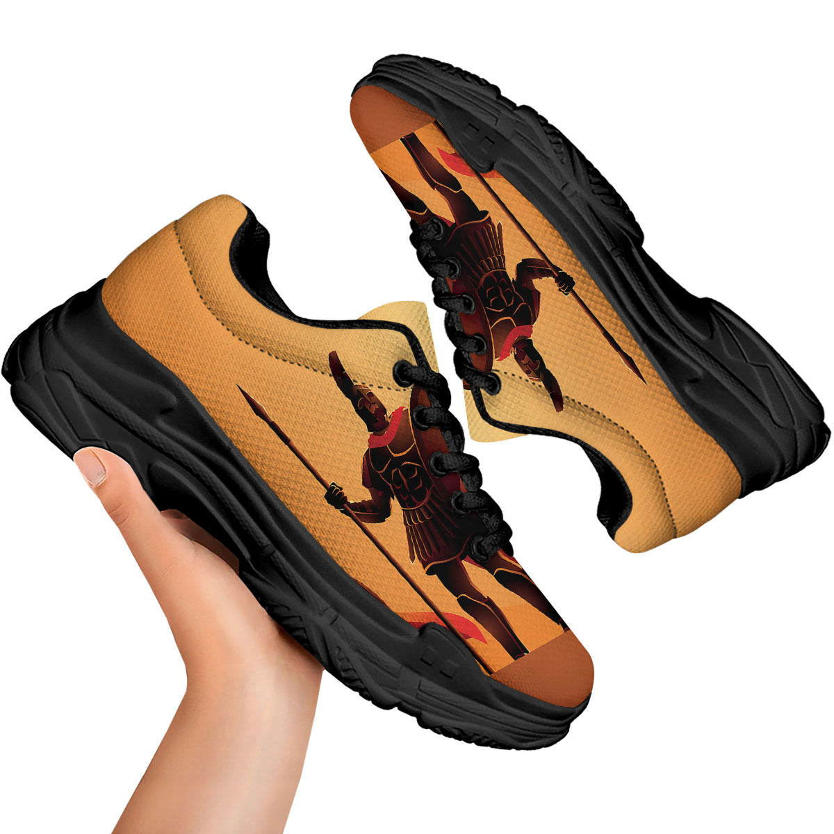 Looking for unique chunky shoes? Check out our Spartan Ancient Print Black Chunky Shoes at Grizzshopping. Our chunky shoes are handcrafted to the highest quality standards that custom made for you