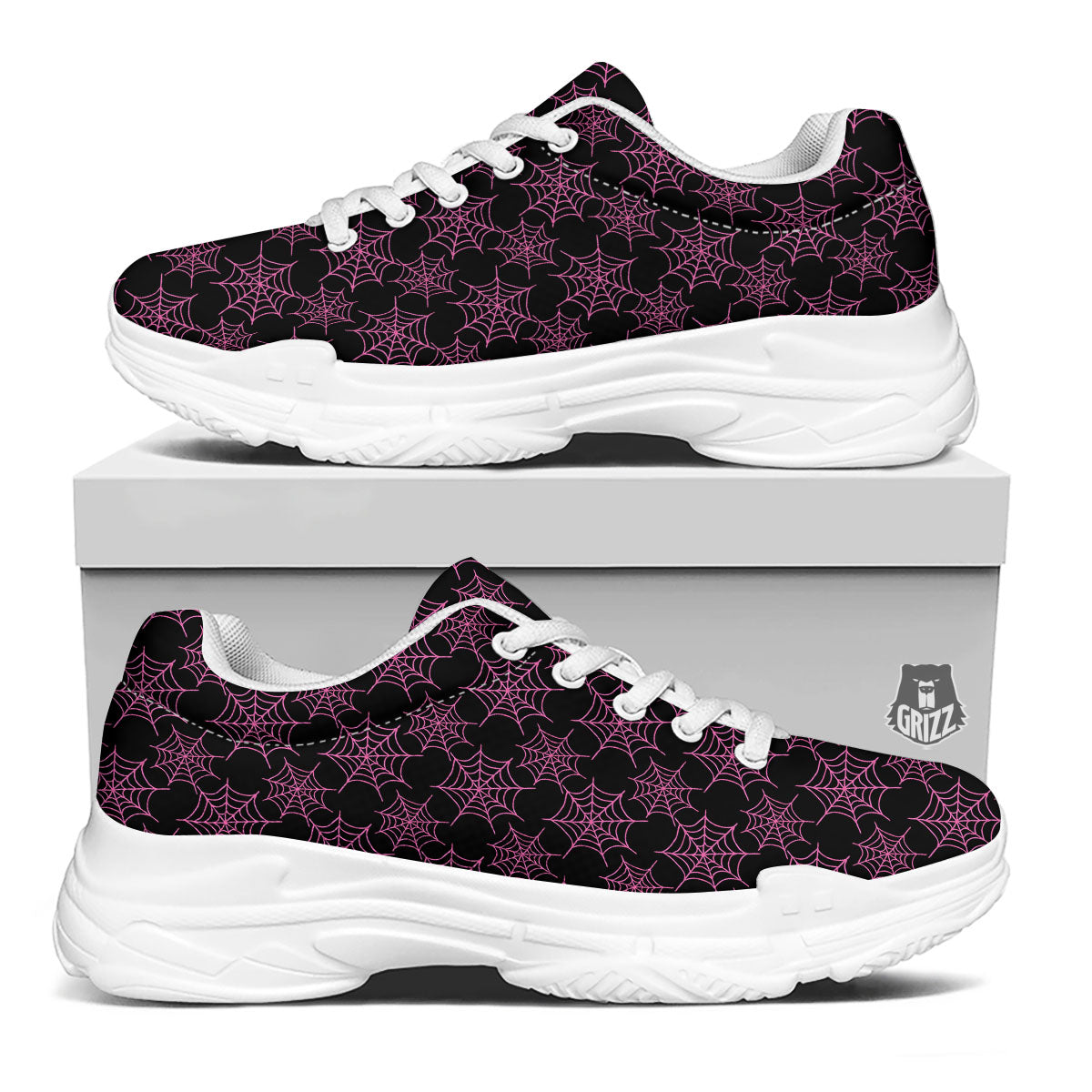 Spider Web Pink And Black Print Pattern White Chunky Shoes