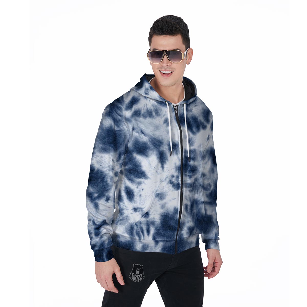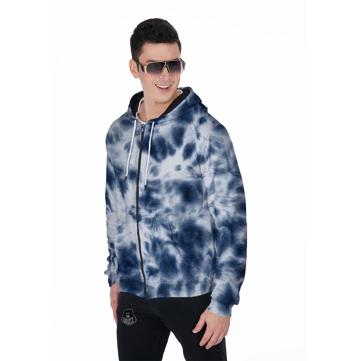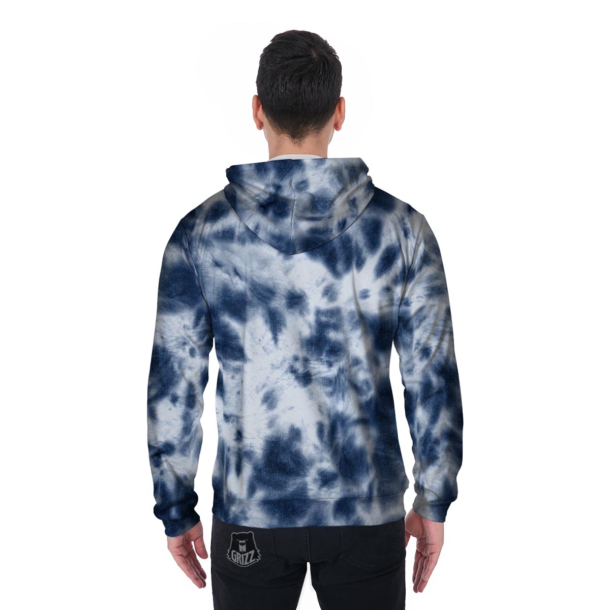 Spiral Blue Tie Dye Men's Zip Up Hoodie