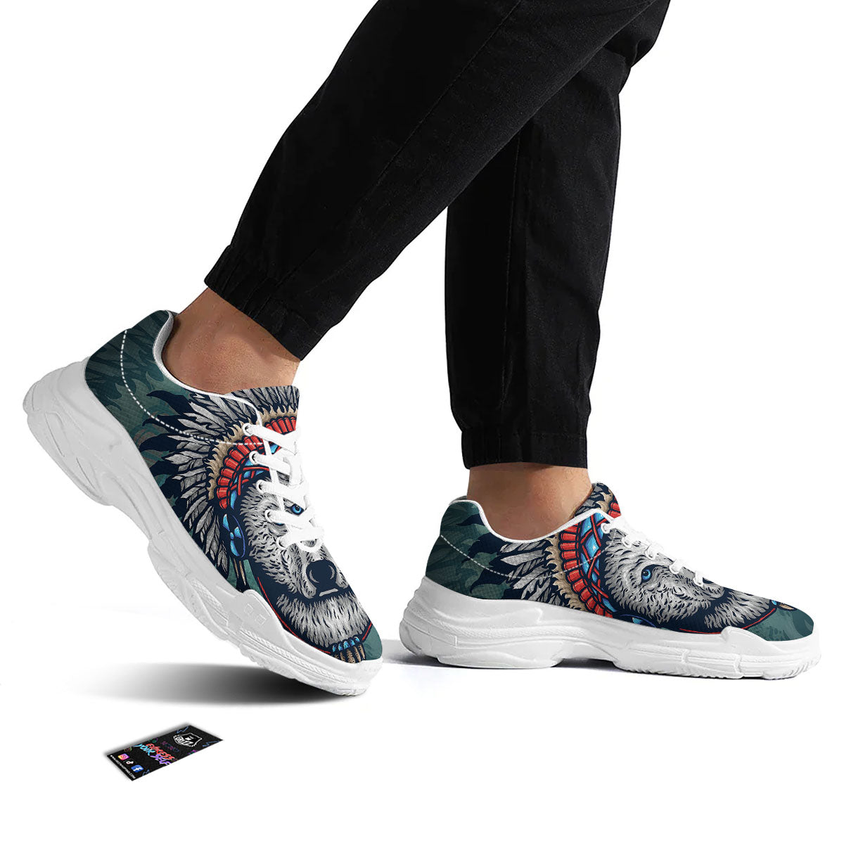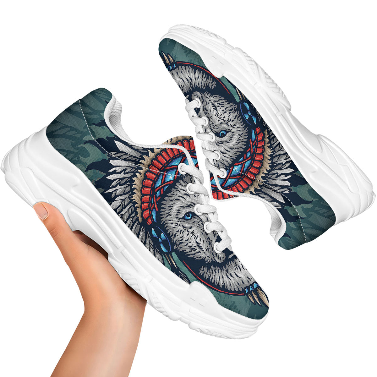 Looking for unique chunky shoes? Check out our Spirit Animal Native American Wolf Print White Chunky Shoes at Grizzshopping. Our chunky shoes are handcrafted to the highest quality standards that custom made for you