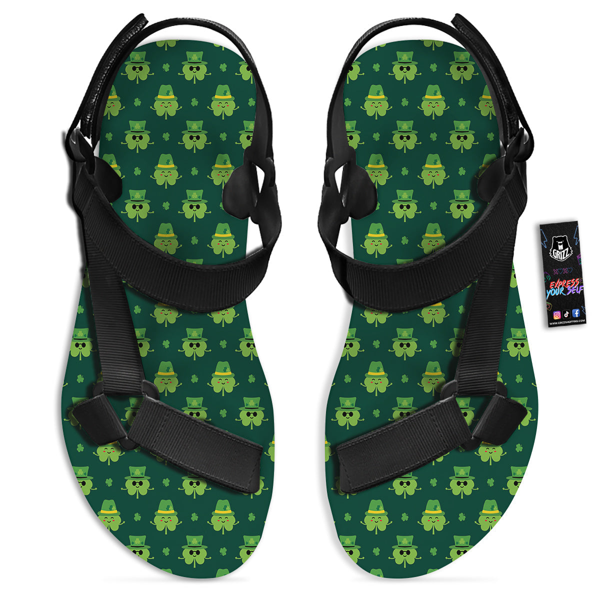 St. Patrick's Day Cute Print Pattern Black Open Toe Sandals