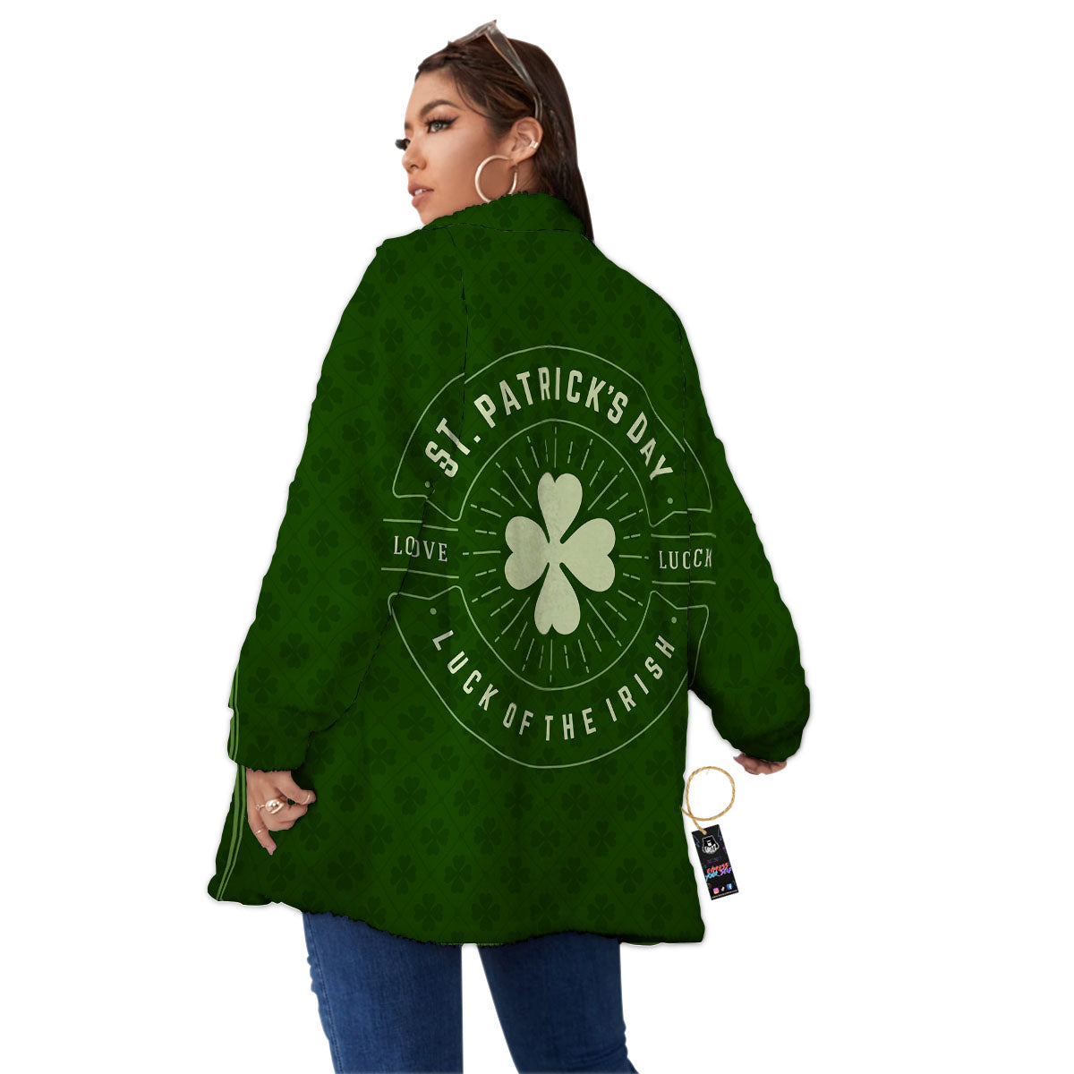 St. Patrick's Day Four Leaf Clover Print Women's Sherpa Jacket