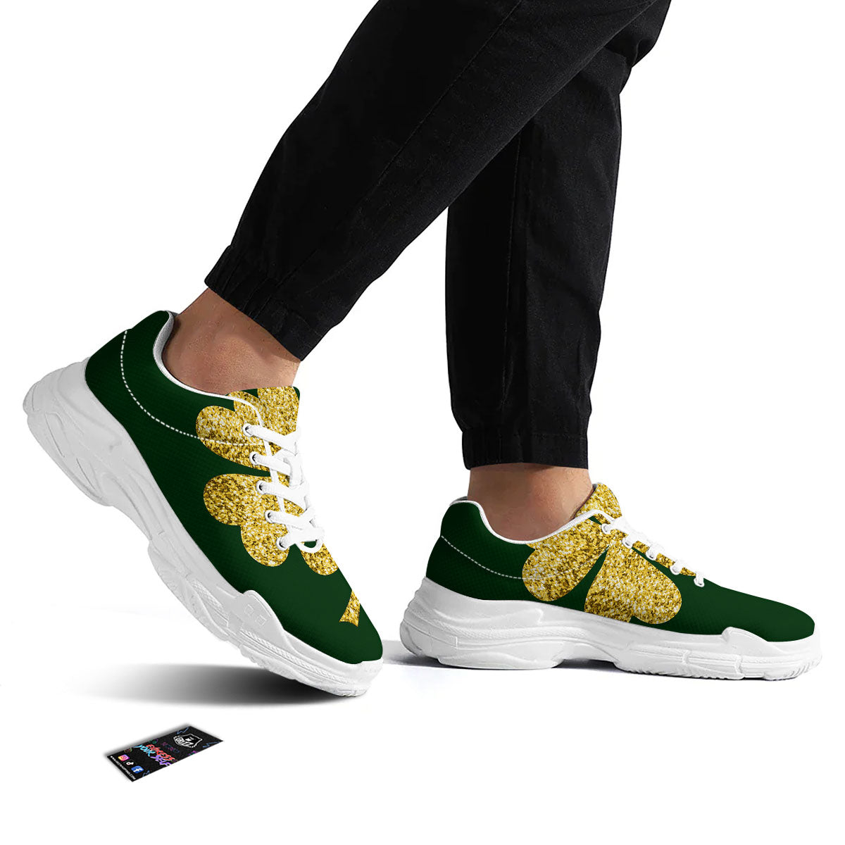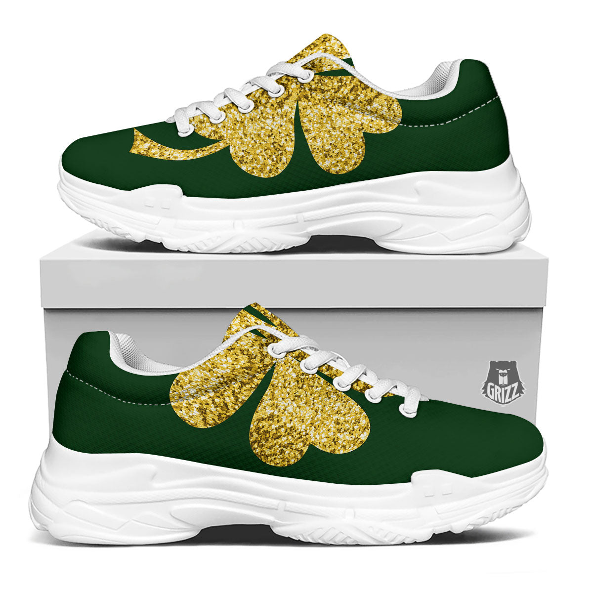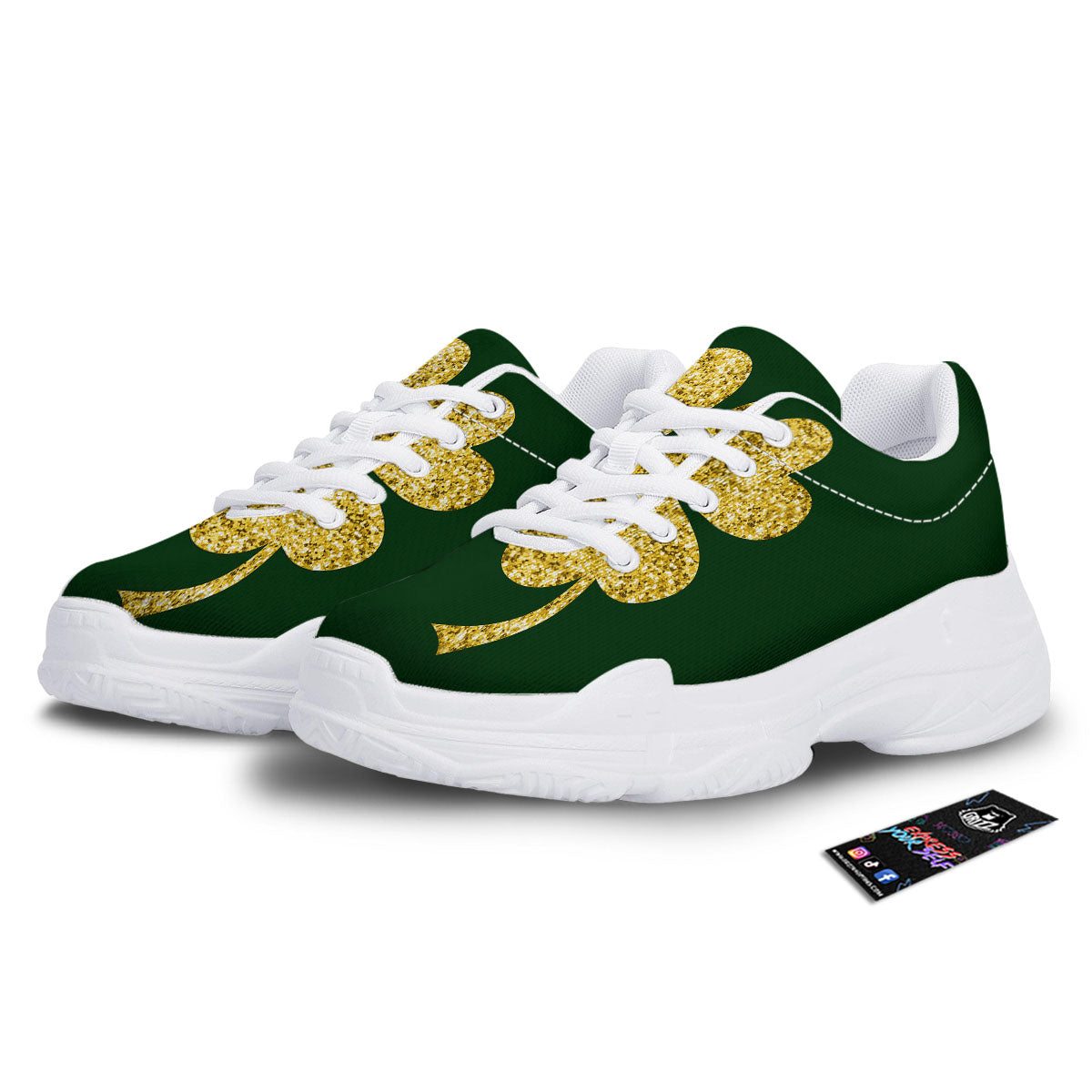 St. Patrick's Day Gold Clover Print White Chunky Shoes