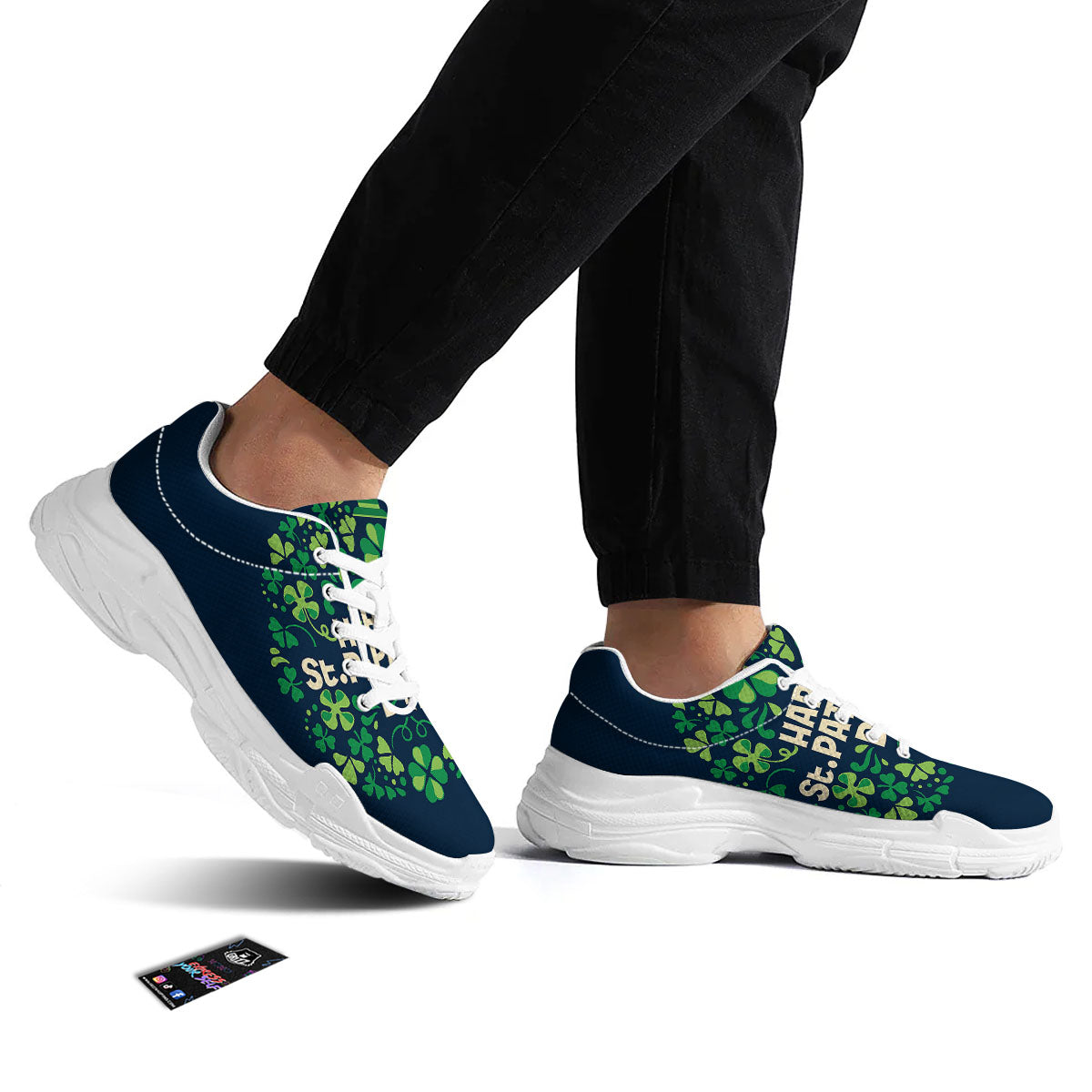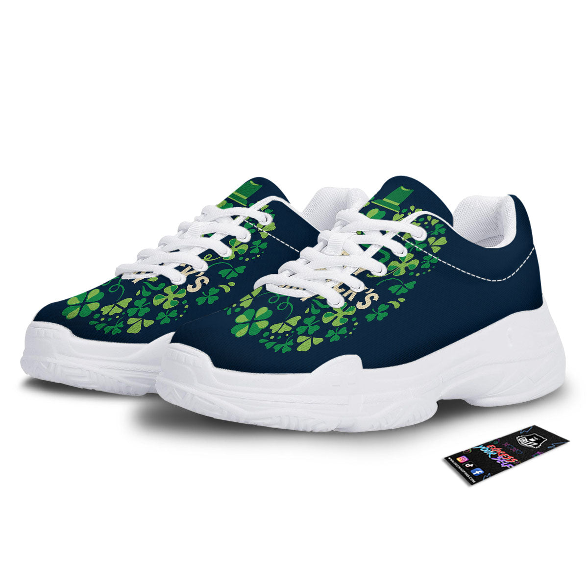 St. Patrick's Day Green Clover Print White Chunky Shoes