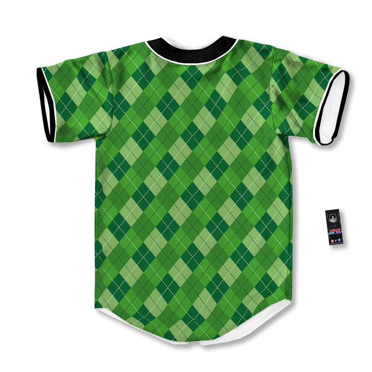 St. Patrick's Day Green Plaid Print Baseball Jersey