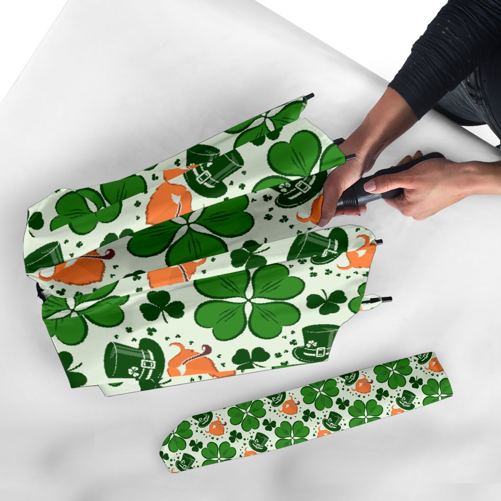 St Patrick's Day Leprechaun Pattern Print Automatic Foldable Umbrella