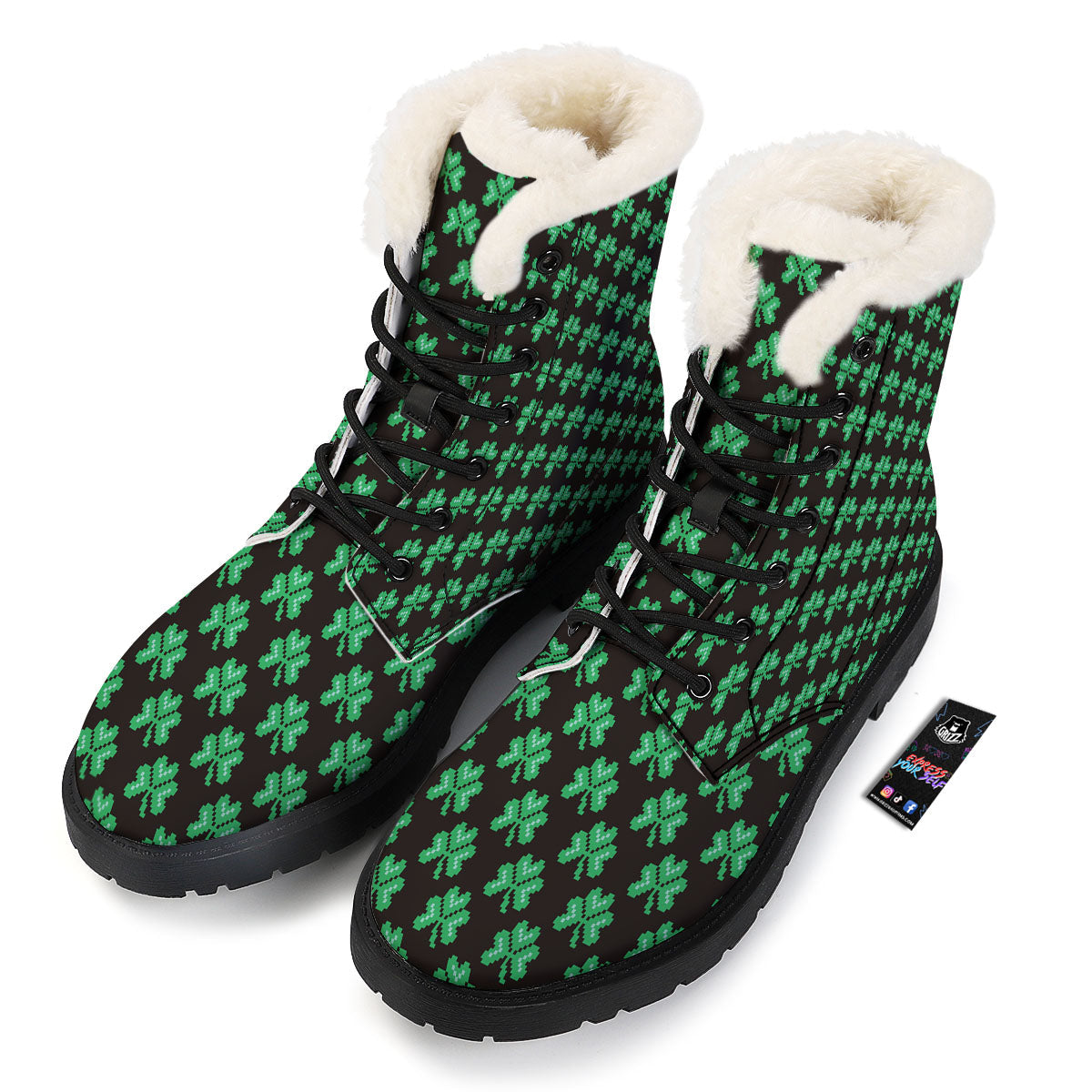 Looking for a unique boot? Check out our St. Patrick's Day Pixel Clover Print Pattern Winter Boots at Grizzshopping. Our boot are handcrafted to the highest quality standards that custom made for you