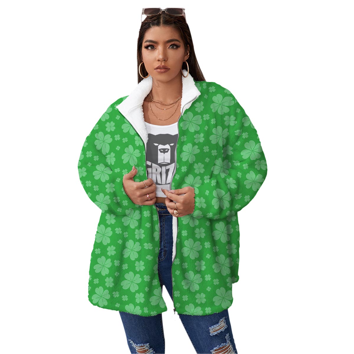St. Patrick's Day Shamrock Leaf Print Pattern Women's Sherpa Jacket