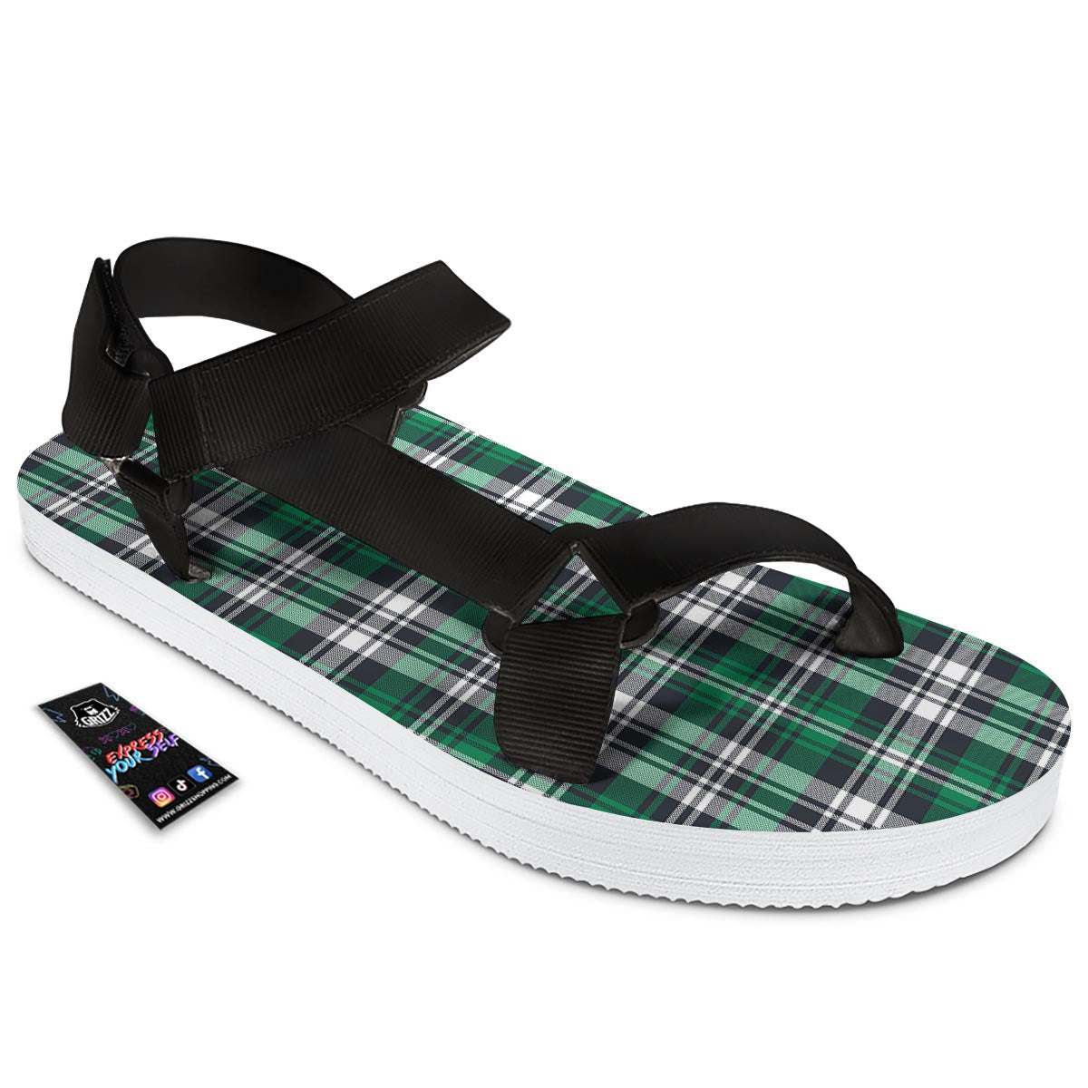 St. Patrick's Day Tartan Shamrock Print Pattern Black Open Toe Sandals
