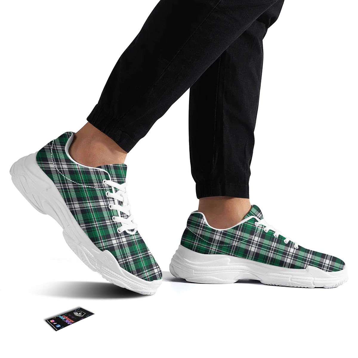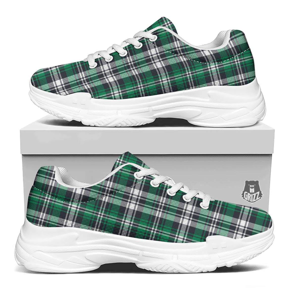 St. Patrick's Day Tartan Shamrock Print Pattern White Chunky Shoes