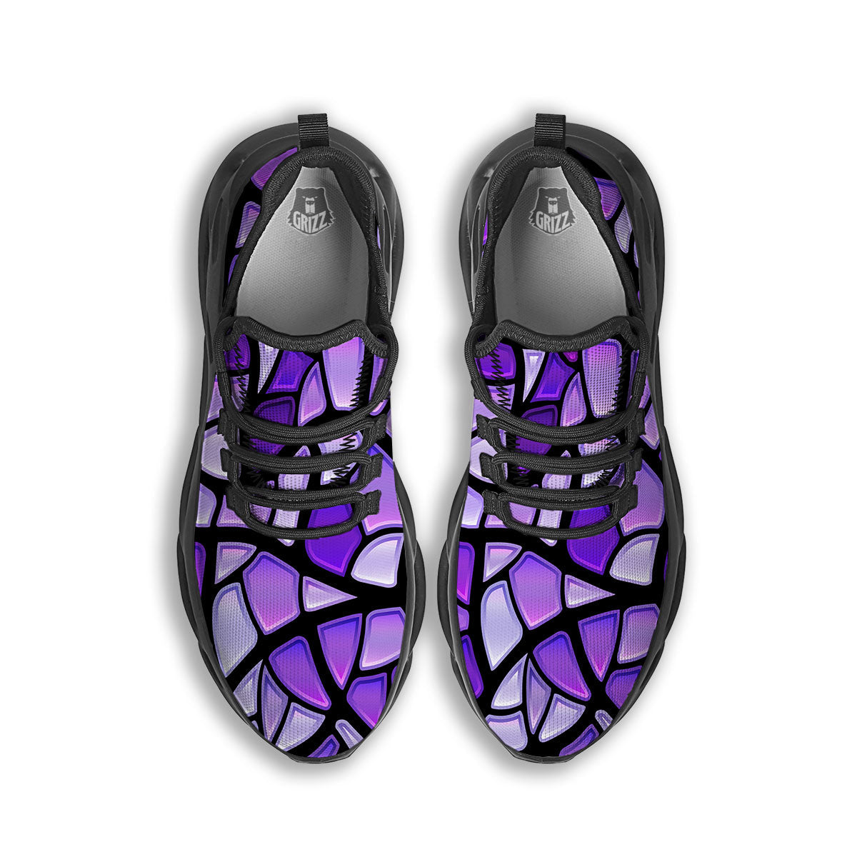 Stained Glass Mosaic Purple Print Black Running Shoes
