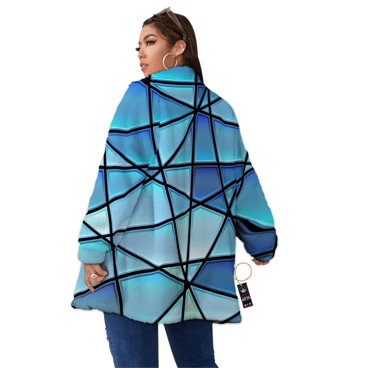 Stained Glass Mosaic Teal Print Women's Sherpa Jacket