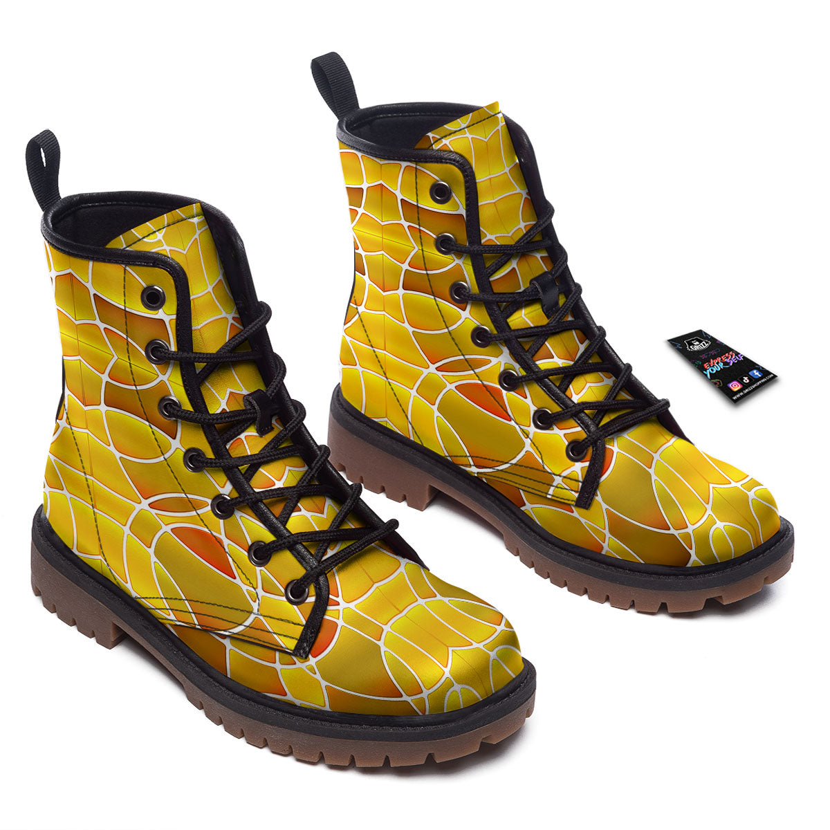 Stained Glass Mosaic Yellow Print Pattern Work Boots
