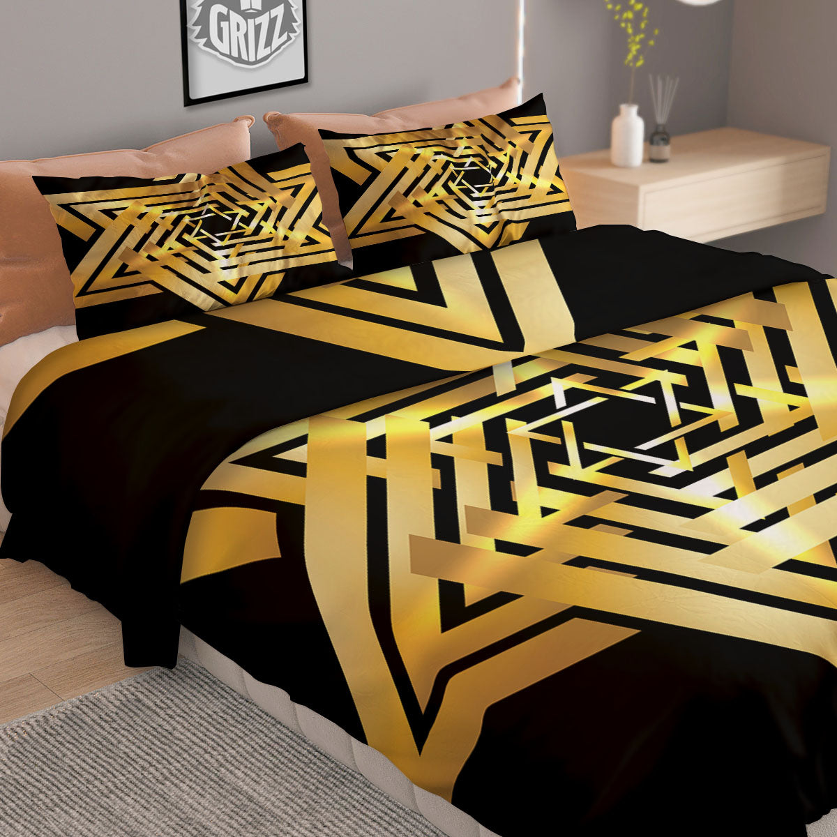 Star of David Gold And Black Print Duvet Cover Bedding Set