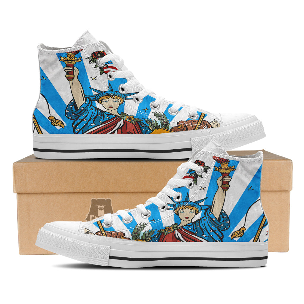 Statue Of Liberty USA Print White High Top Shoes