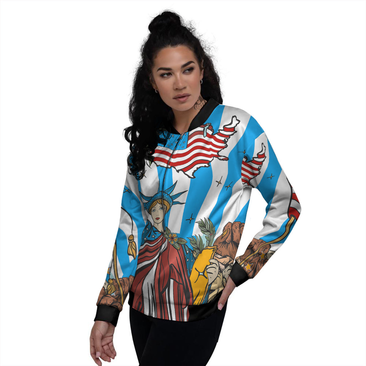Statue Of Liberty USA Print Women's Bomber Jacket